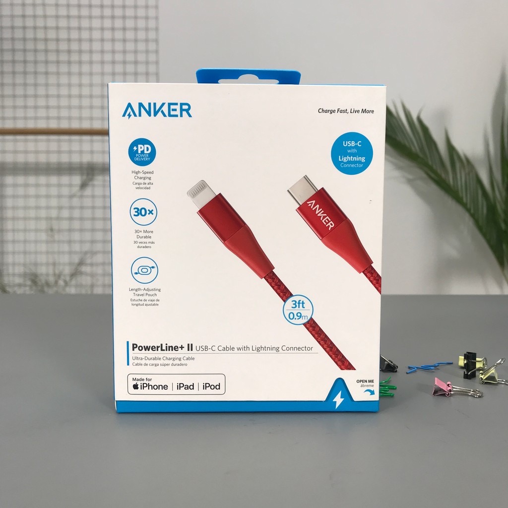 - Cáp Anker Powerline type C - lightning hỗ trợ sạc nhanh cho iphone (30 phút từ 0-50%), ipad.