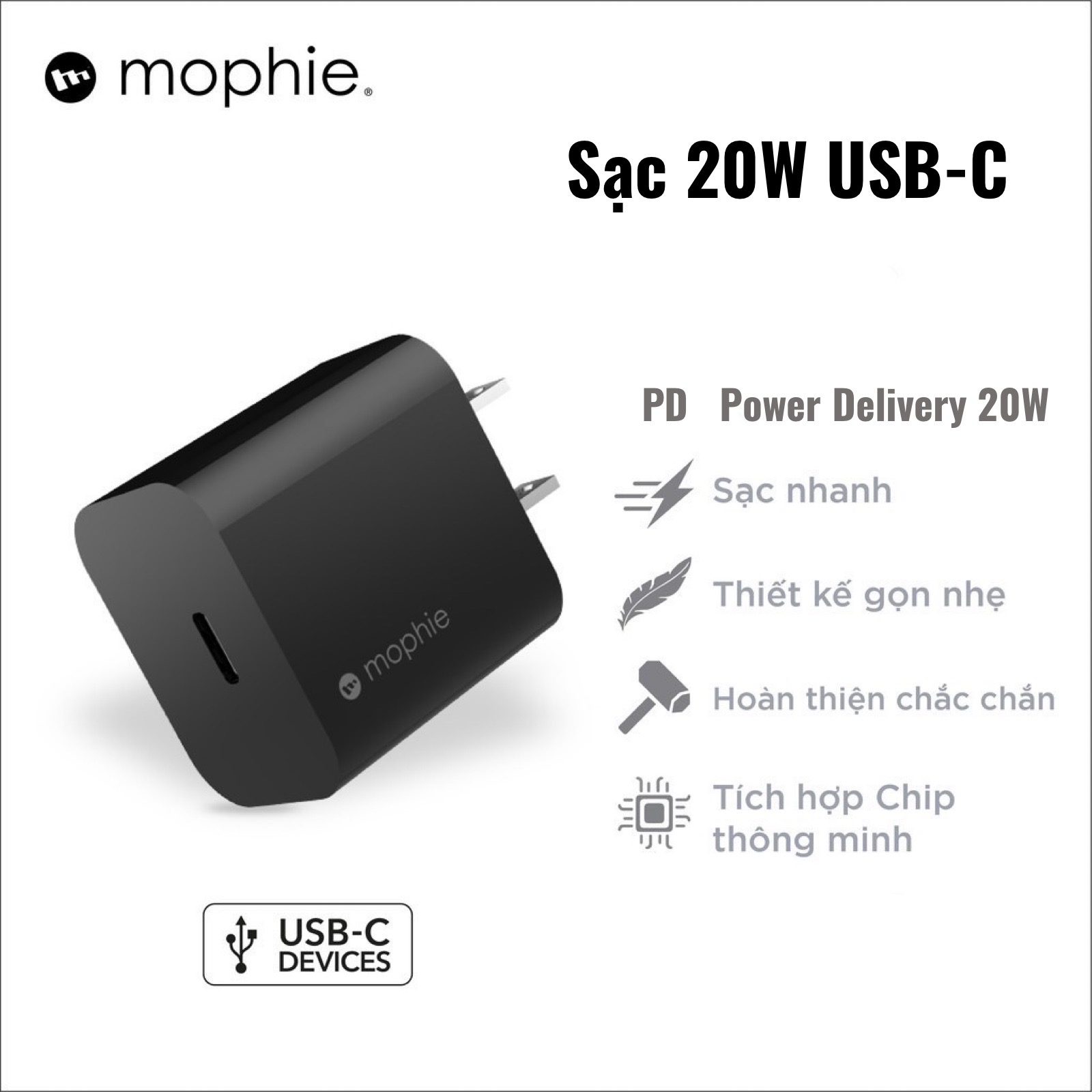 COMBO SẠC NHANH MOPHIE POWER DELIVERY 20W USB-C - Bộ sạc nhanh dành riêng iPhone và iPad, đây được xem là sự lựa chọn tối ưu cho fan Táo khi muốn đẩy nhanh tốc độ sạc nhưng vẫn đảm bảo an toàn cho các thiết bị. Bộ sản phẩm được tích hợp chuẩn sạc nhanh Power Delivery 20W.