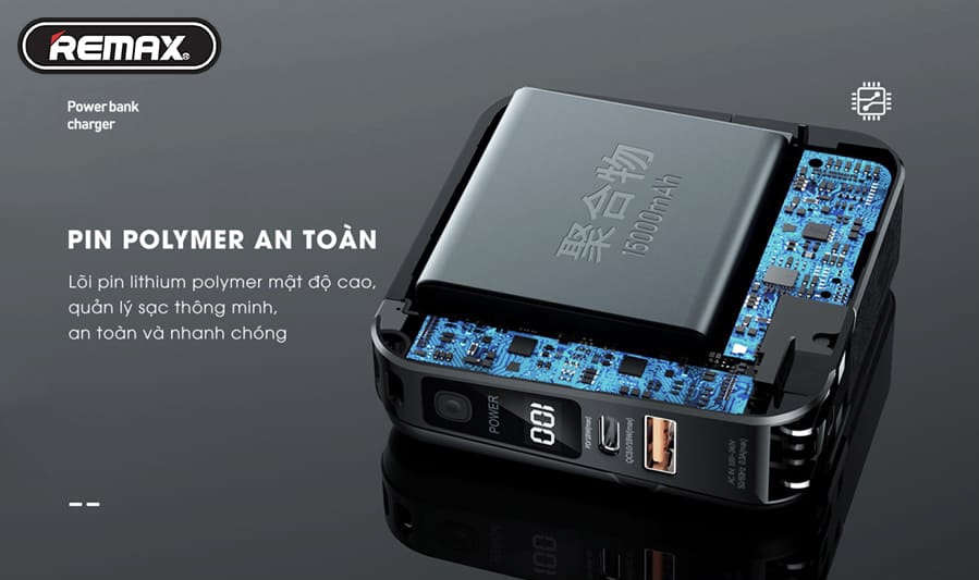 Củ sạc kiêm pin sạc dự phòng Remax 15.000mAh đã được chứng nhận đủ tiêu chuẩn 3C an toàn cho con người và thiết bị điện tử.
