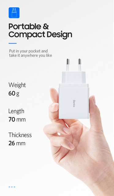 Củ sạc Benks có cổng USB C hỗ trợ sạc nhanh Power Delivery 3.0