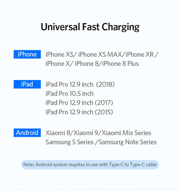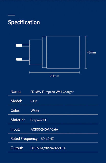 Điện áp và dòng điện 5V / 3A, 9V / 2A, 12V / 1.5A. Nó có thể sạc nhanh cho các thiết bị tương thích PD của bạn.