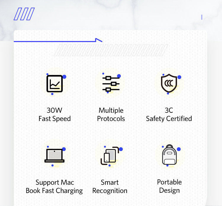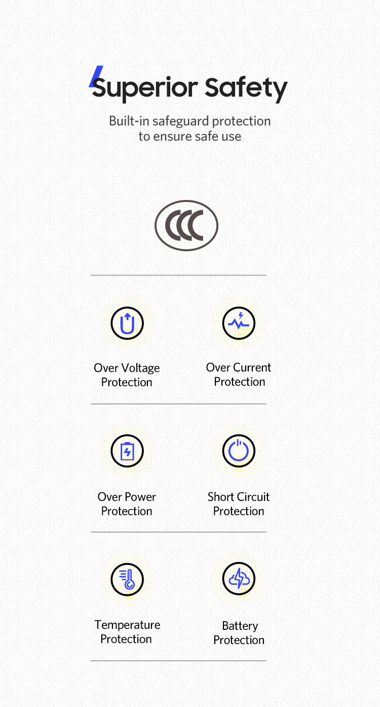 4. Sạc thiết bị của bạn một cách an toàn. Nó đi kèm với đa bảo vệ như bảo vệ quá nhiệt, bảo vệ quá dòng, bảo vệ quá áp và bảo vệ ngắn mạch, bảo vệ các thiết bị của bạn sạc an toàn.