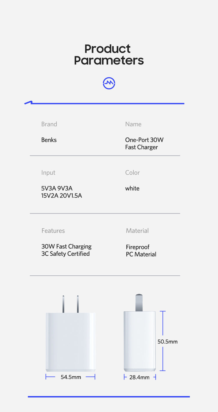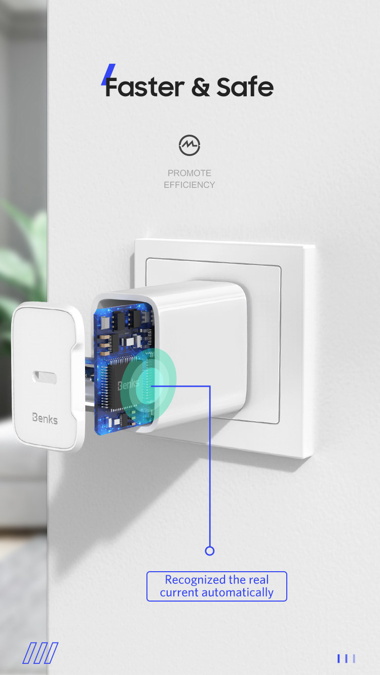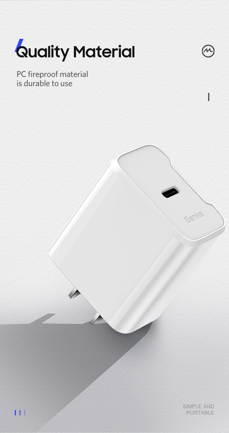 1. Củ sạc nhanh 30W USB-C chính hãng Benks Sạc nhanh 30W, nhẹ và tiện lợi, chứng nhận an toàn 3C.