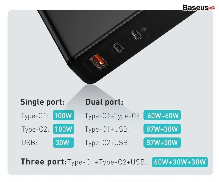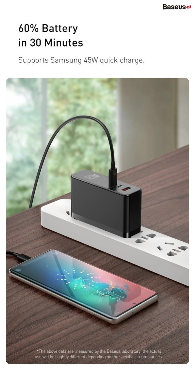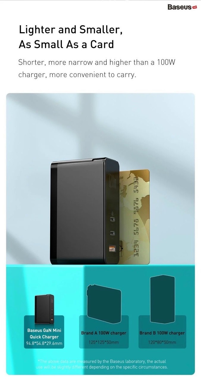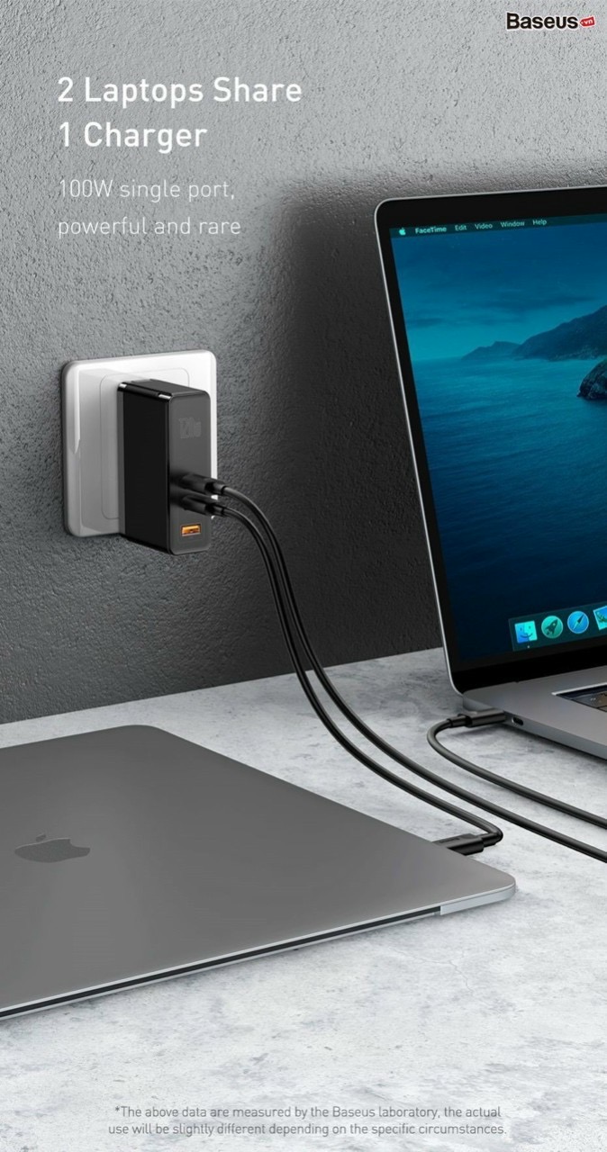 - Một bộ cốc sạc nhanh với công suất lớn lên đến 120W mang thương hiệu Baseus vừa được ra mắt. Đây là một bộ sạc nhanh sử dụng công nghệ sạc GaN (Gallium Nitride) kết hợp với mô-đun nguồn SiC (Silicon Carbibe) để cốc sạc có kích thước nhỏ gọn mà công suất lớn.