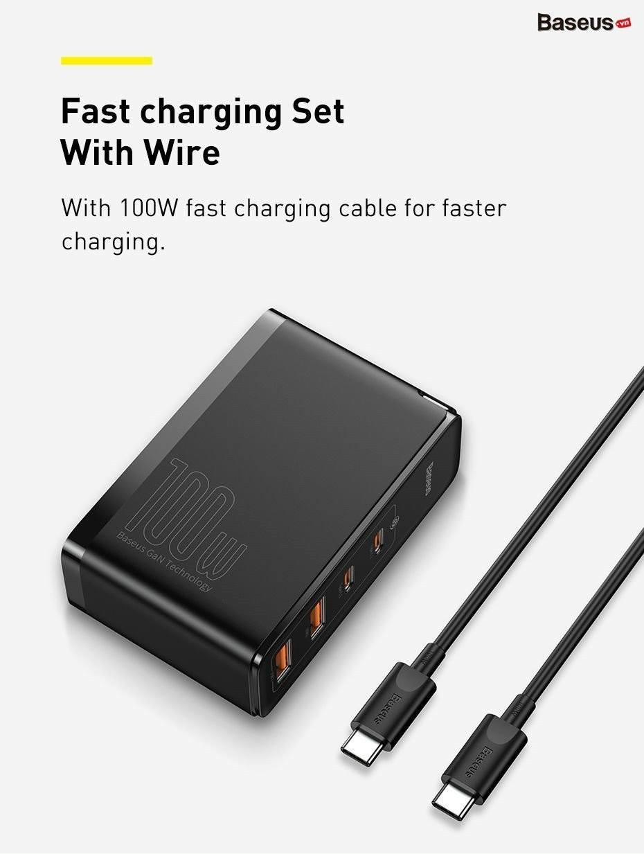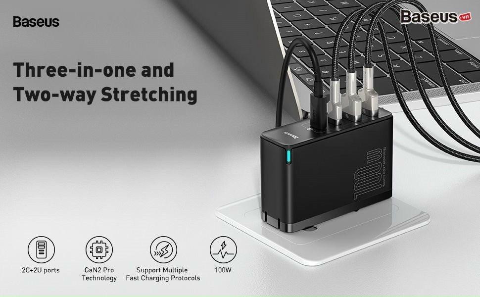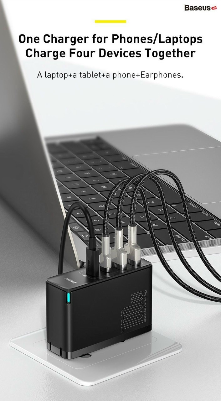 Là bộ sạc nhanh chuẩn GaN2 thế hệ mới nhất vừa được Baseus giới thiệu. Sản phẩm với 4 cổng sạc nhanh ở ngỏ ra, công suất lên đến 100W, hỗ trợ hầu như tất cả các chuẩn sạc nhanh hiện nay . Với Bộ sạc nhanh Baseus GaN2 Pro Quick Charger 4 Ports bạn chỉ cần 1 bộ sạc duy nhất cho tất cả các thiết bị của mình, giải phóng đáng kể không gian cho chiếc ba lô của bạn và dành nó cho nhiều thứ hấp dẫn hơn thay vì phải chứa vô vàng củ sạc và cáp sạc cho từng thiết bị riêng lẻ.