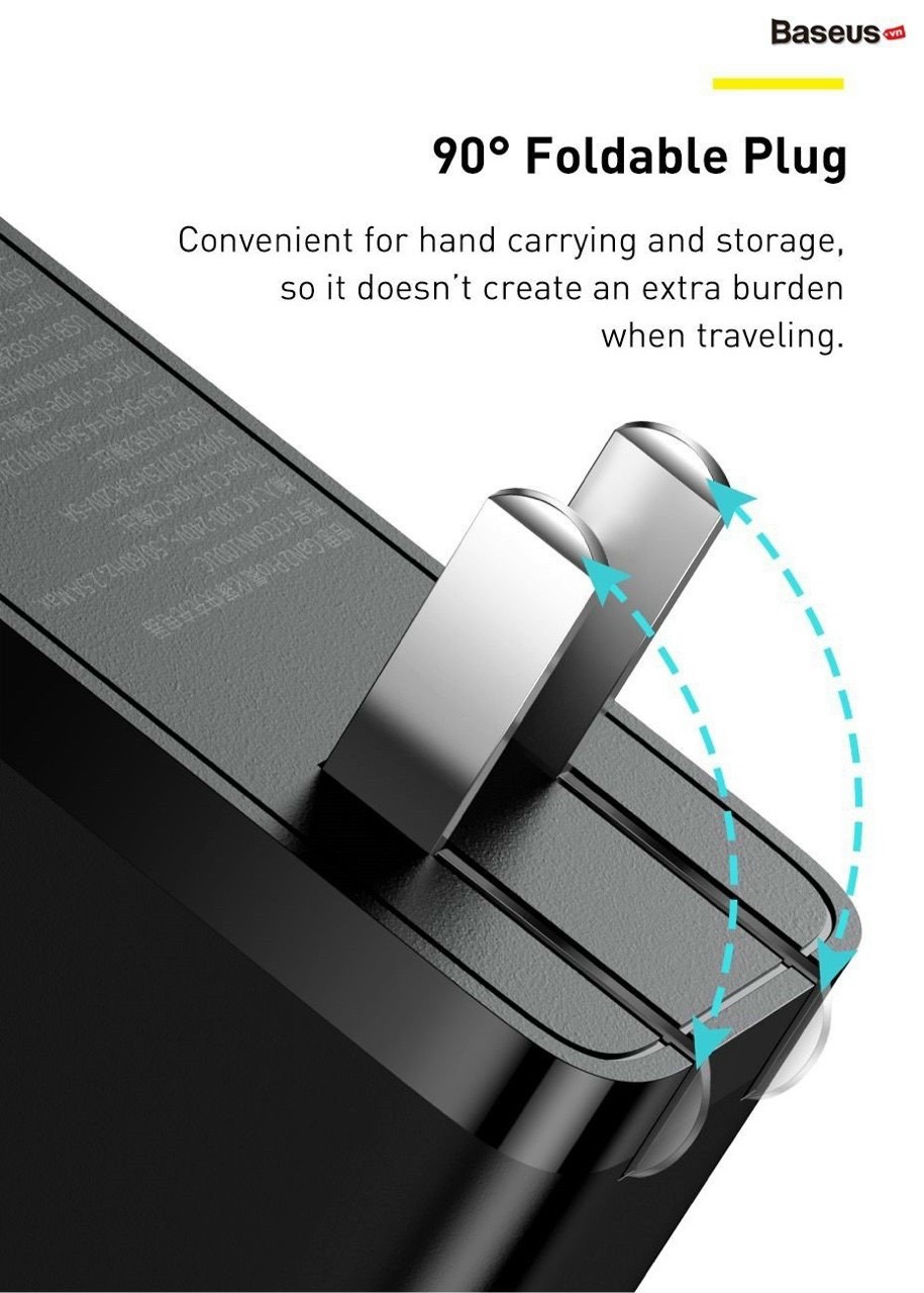 - Chân cắm được thiết kế có thể mở ra hoặc đóng lại tiện dụng giống các cục sạc iPad hoặc macbook dễ dàng mang theo.