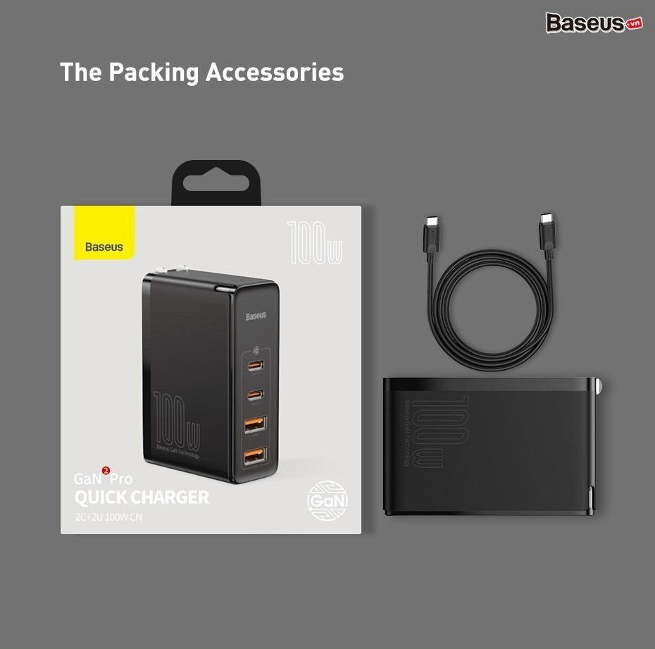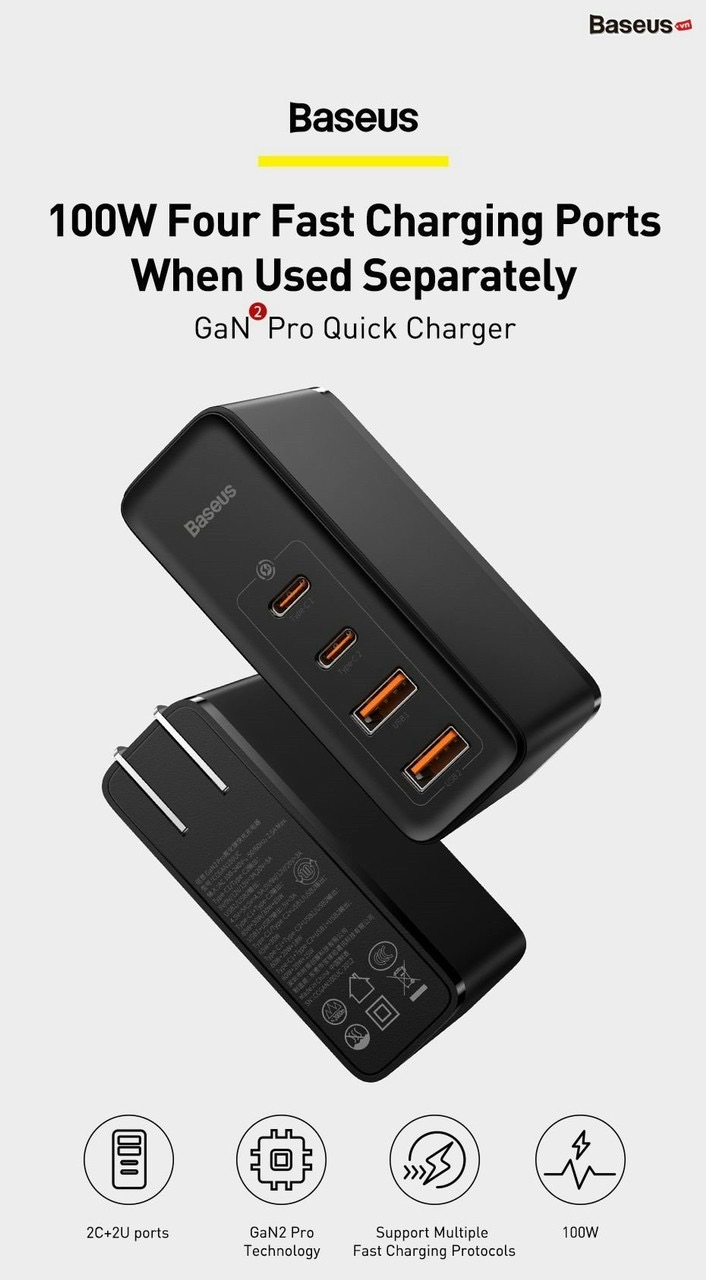 Giới thiệu Bộ sạc nhanh Baseus GaN2 Pro Quick Charger 4 Ports (100W, C*2+U*2)