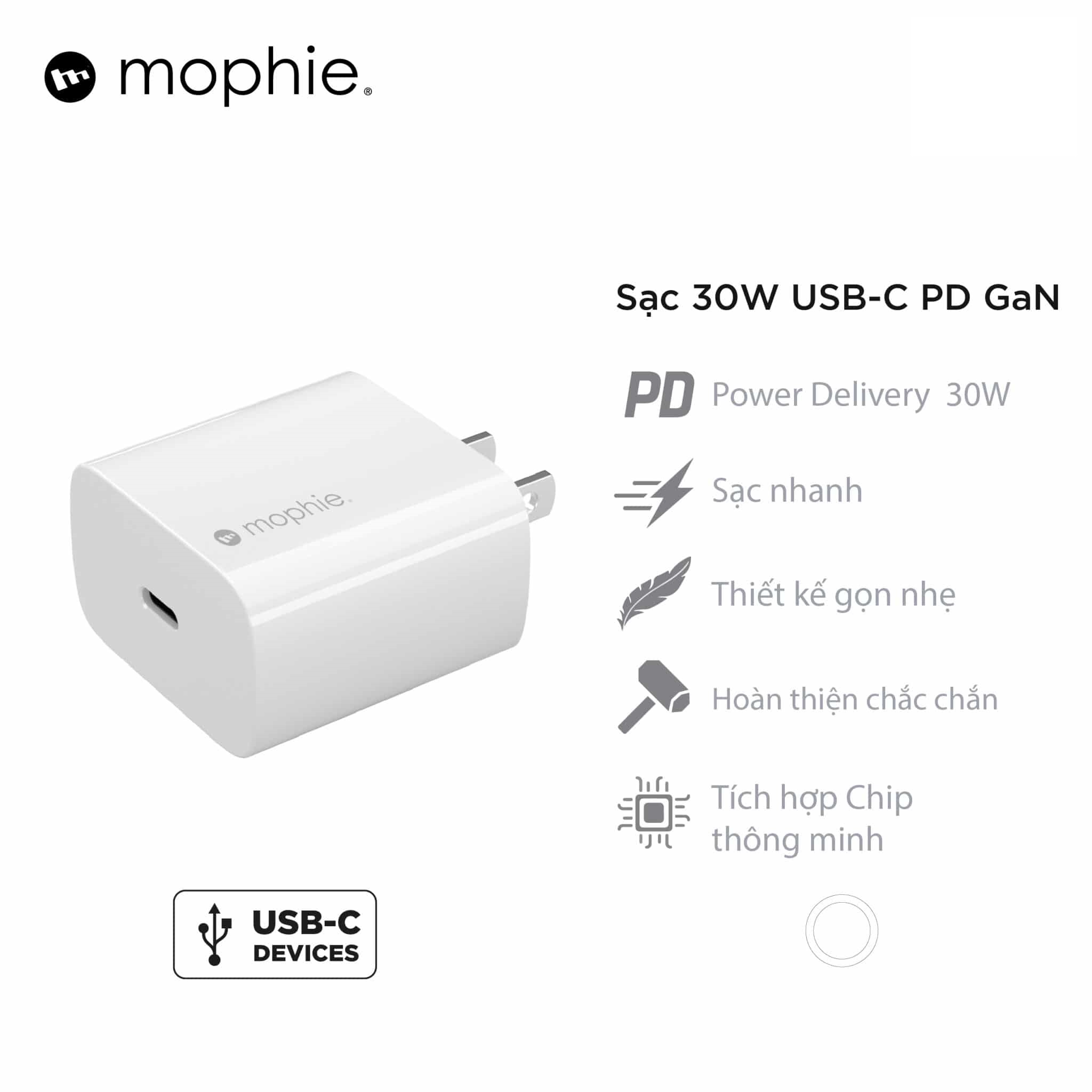 CÁC TÍNH NĂNG CỦA SẢN PHẨM CỦ SẠC NHANH MOPHIE PD 30W USB-C GAN