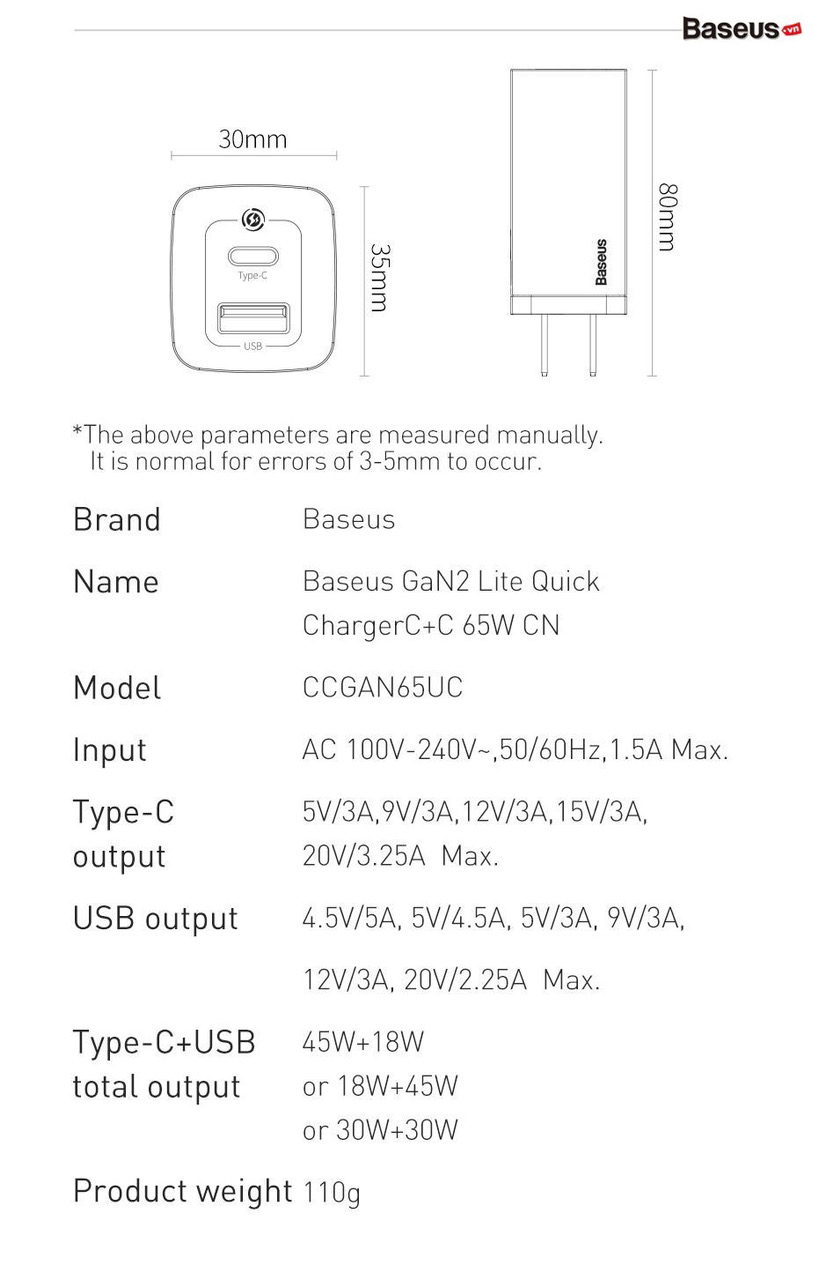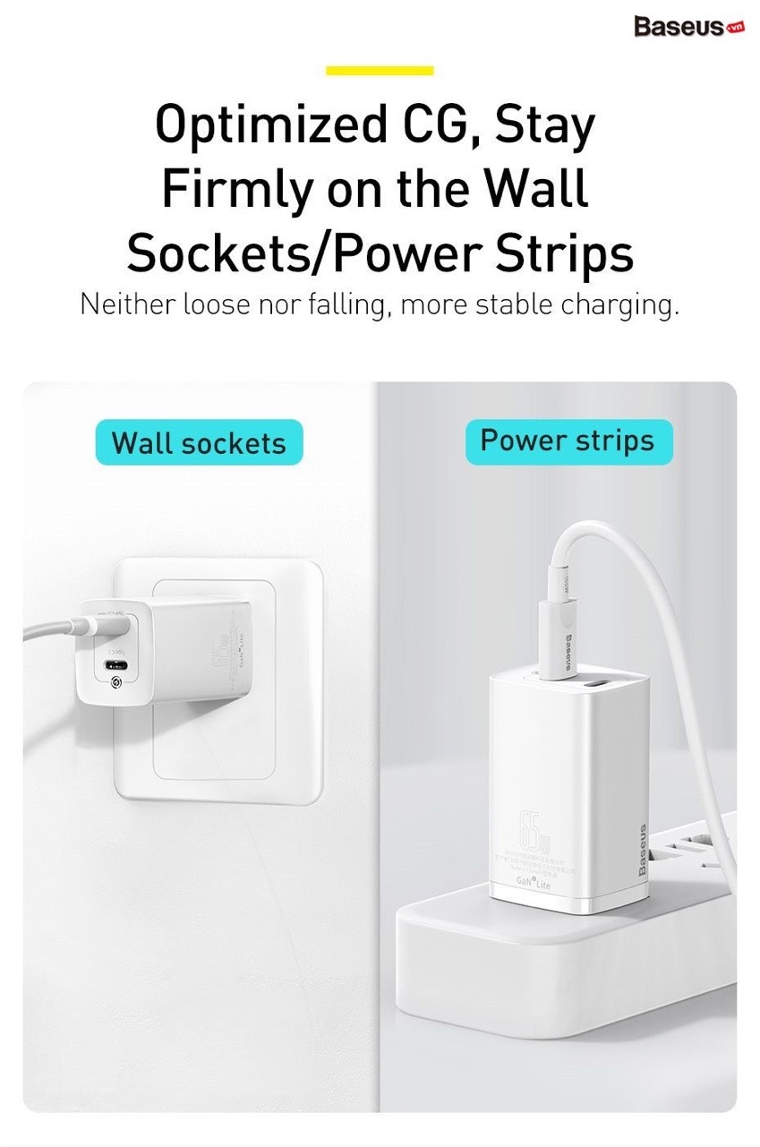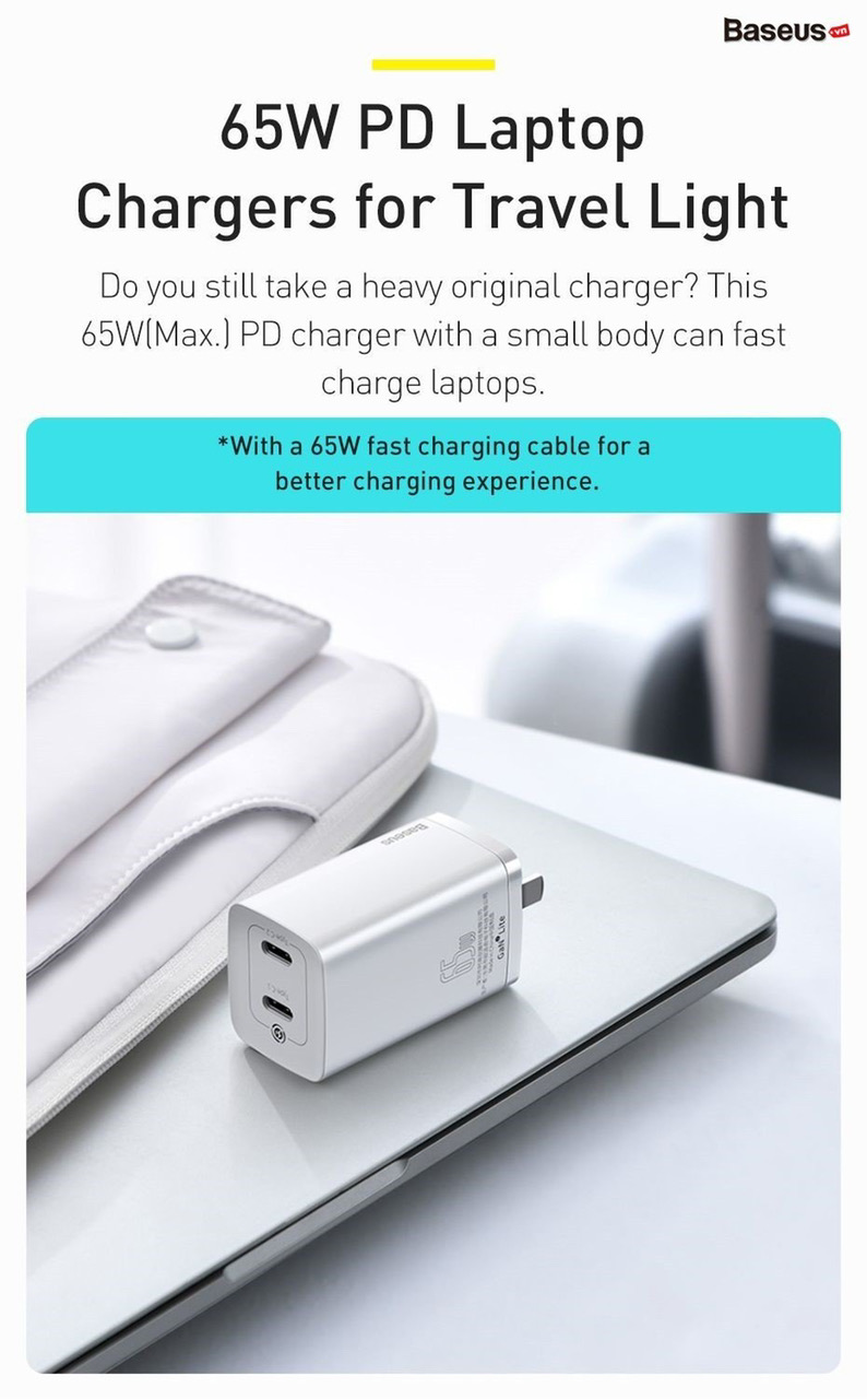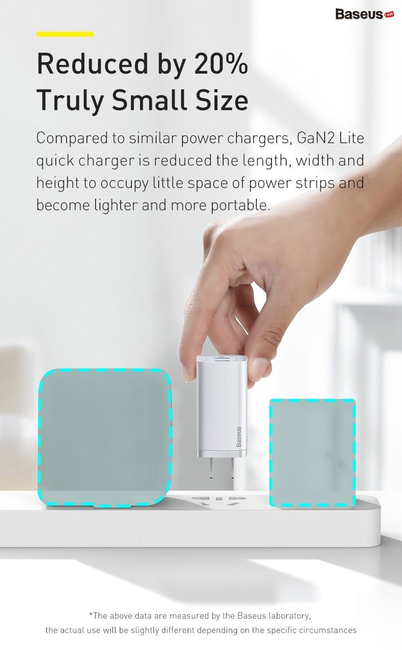 Là phiên bản rút gọn của dòng củ sạc nhanh GaN2 đến từ Baseus, sản phẩm này sở hữu đầy đủ những tính năng ưu việt của dòng sạc sử dụng vật liệu bán dẫn GaN2 cao cấp với công suất sử dụng cao và kích thước vô cùng nhỏ gọn, tương thích nhiều thiết bị khác nhau.