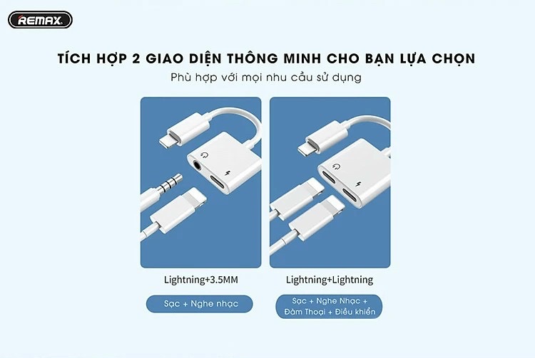 Sở hữu các thiết bị iPhone thế hệ mới và bạn cảm thấy bất tiện khi không thể vừa cắm sạc vừa nghe nhạc. Thì Adapter Lightning to double lightning Remax RL-LA07i sẽ là phụ kiện giúp bạn giải quyết nhanh chóng những hạn chế đó.