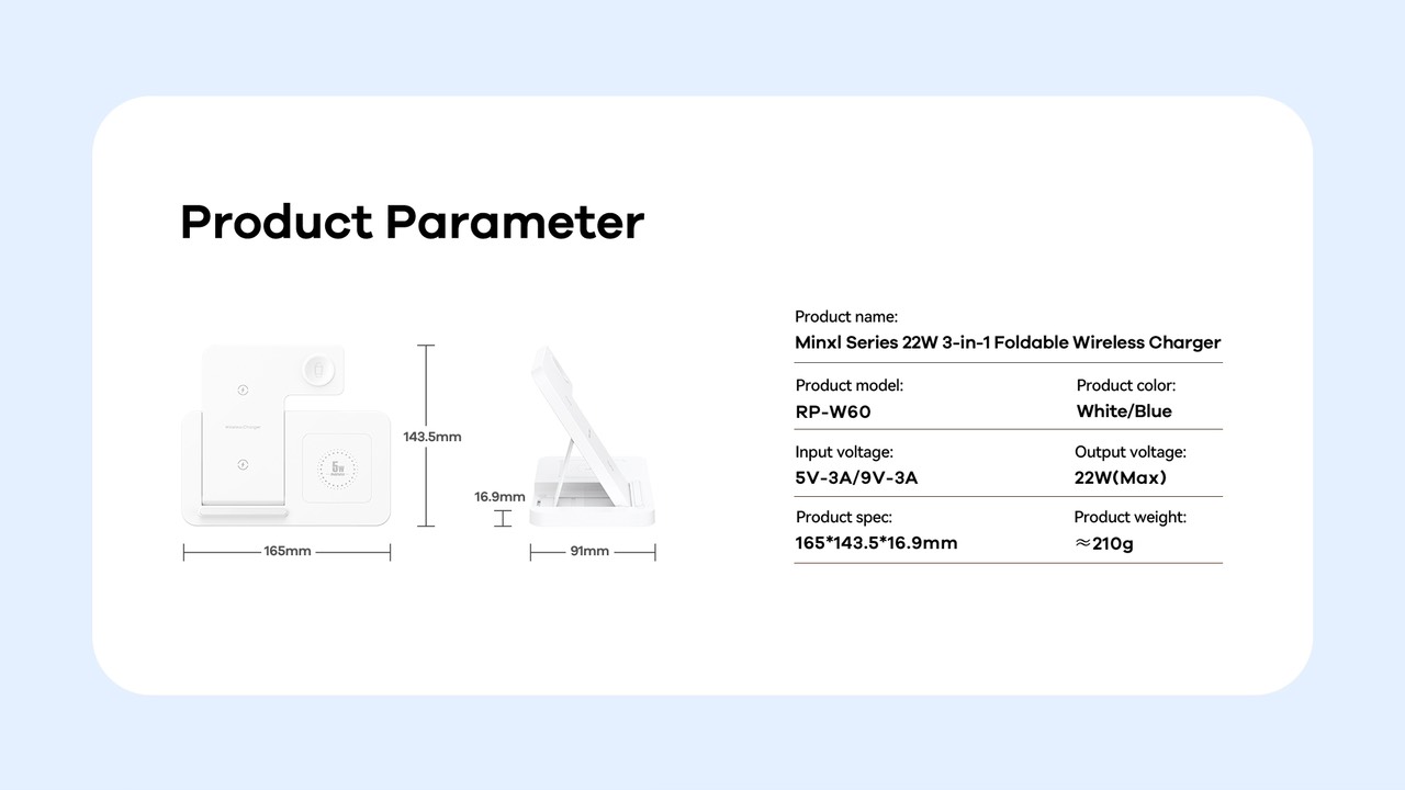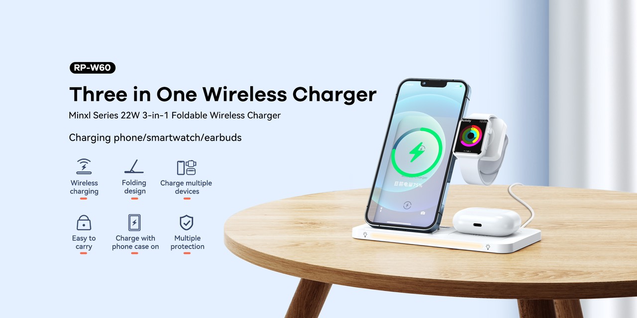 Sạc không dây 3in1 loại 22W RP-W60 là sạc không dây chính hãng của REMAX, tiêu chuẩn xuất khẩu trên toàn thế giới.