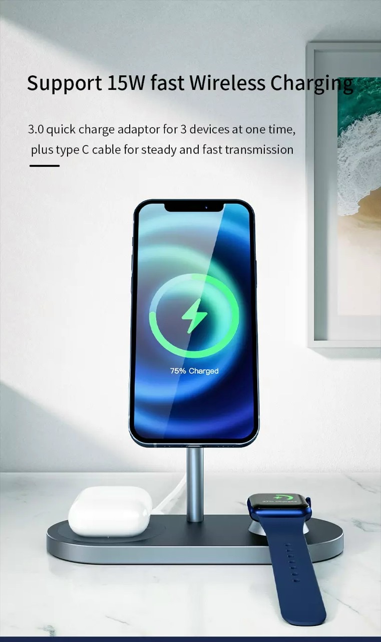 Sạc không dây 3 in 1 cho iPhone, Apple watch, Airpods