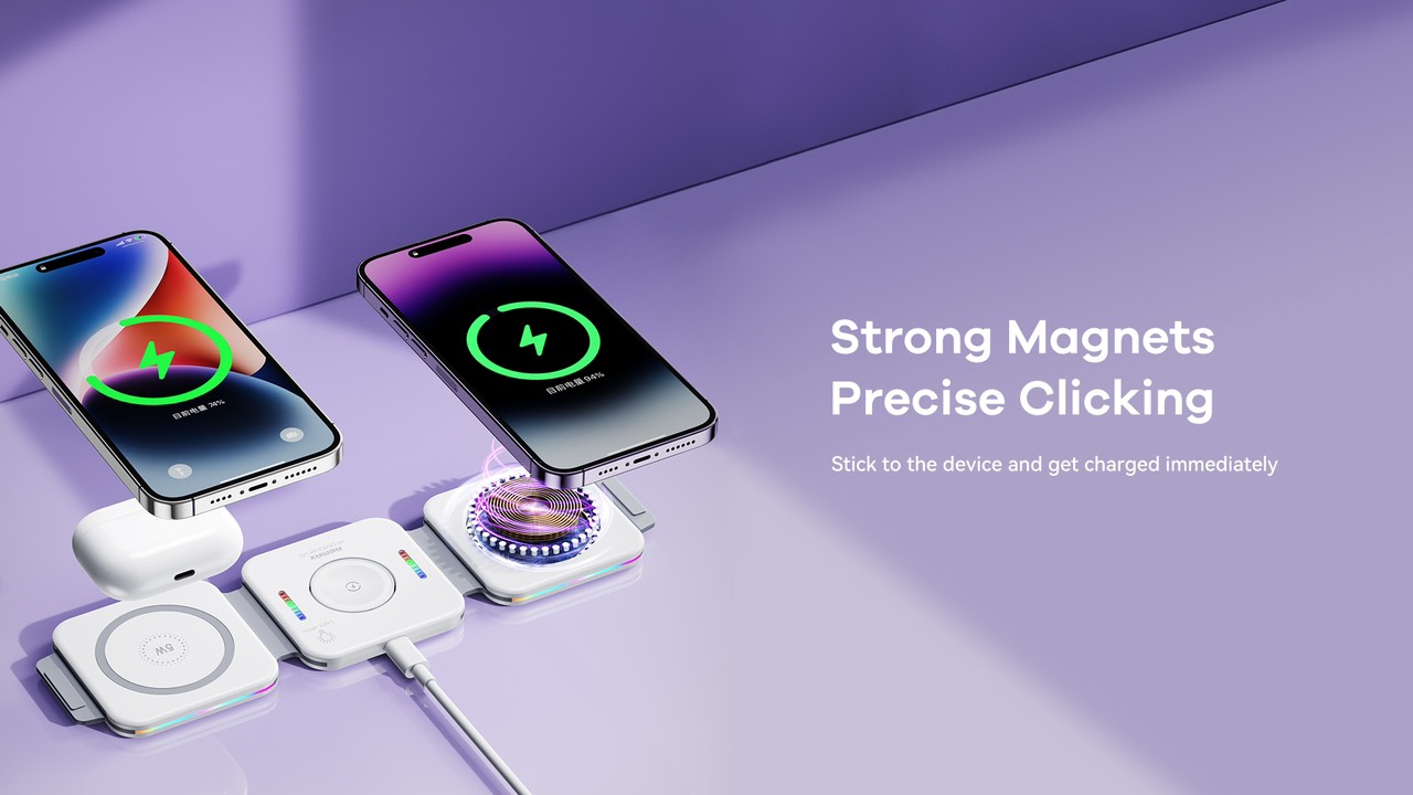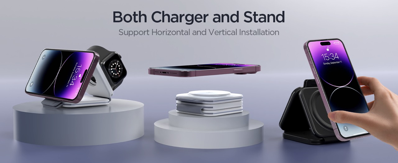 1. Thiết kế có thể gập lại, nhỏ và di động, dễ dàng lấy và đặt, đặt trên tay, sạc trong tay, hỗ trợ sạc nhanh 15W cho điện thoại di động