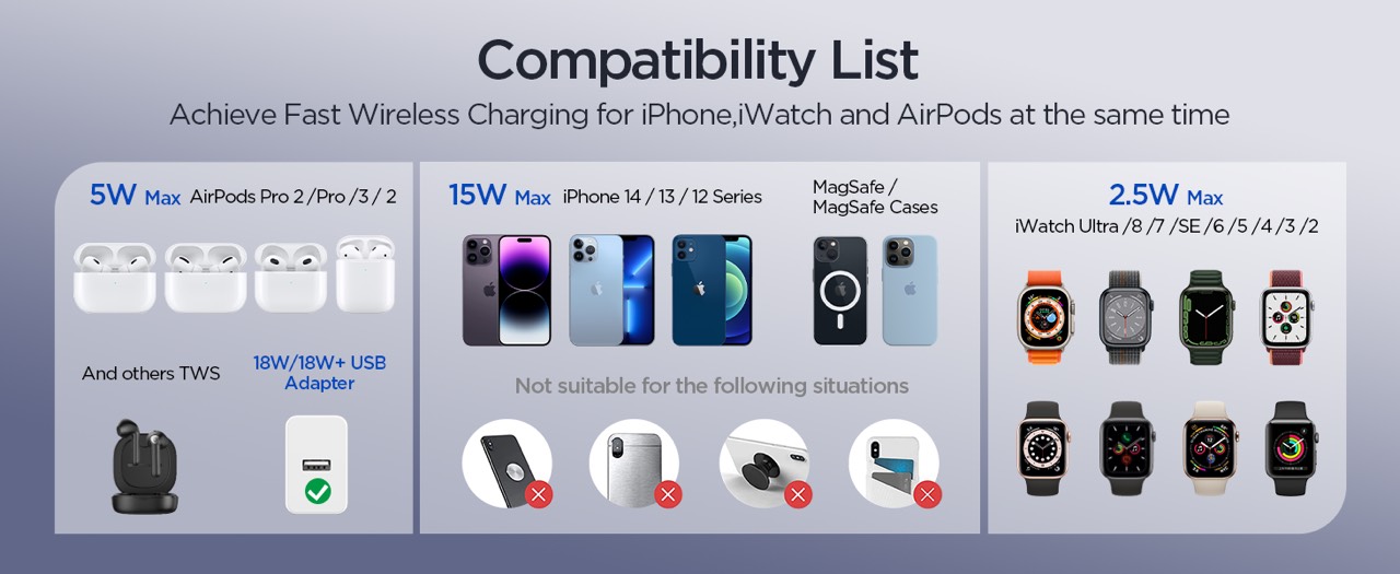 3. Thích hợp cho điện thoại di động iPhone và Android, tương thích với đầu ra 15W/10W/7.5W/ 5W