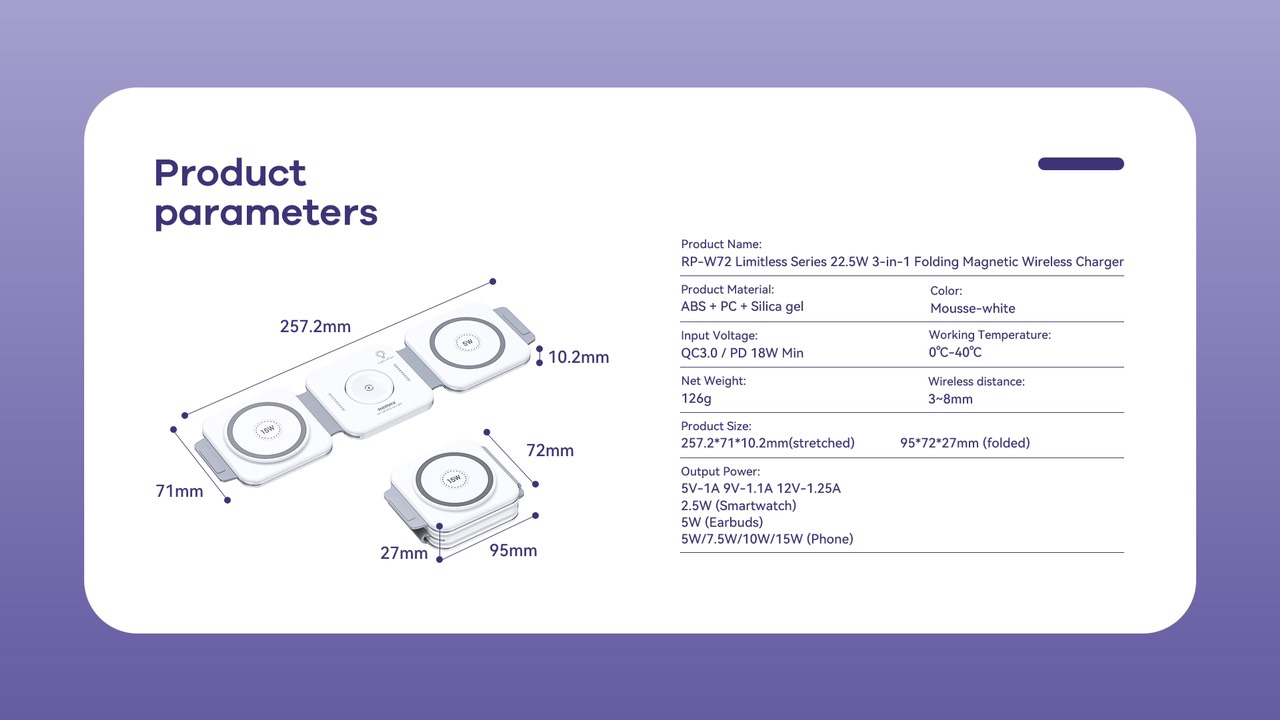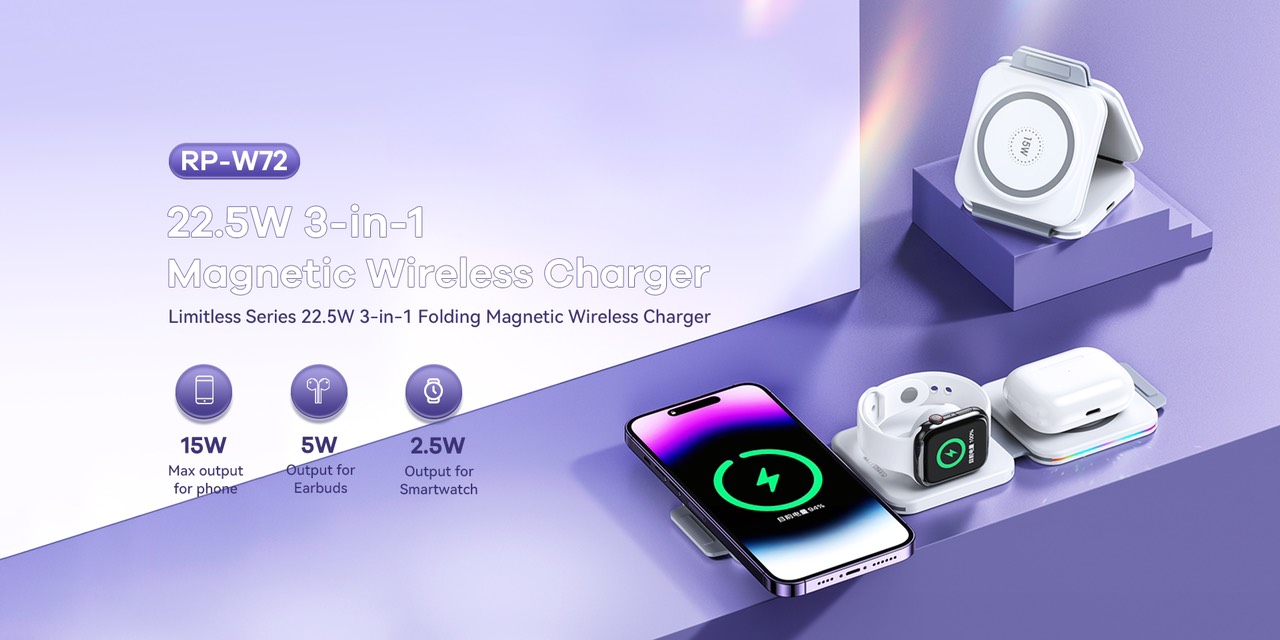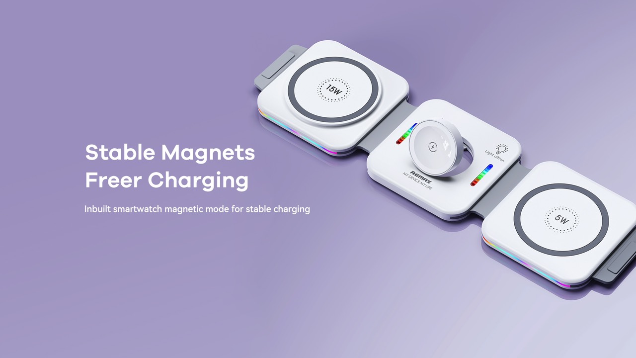 Đế sạc nhanh không dây 22.5W gấp gọn 3in1 Remax RP-W72