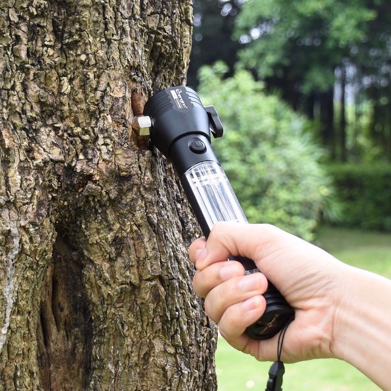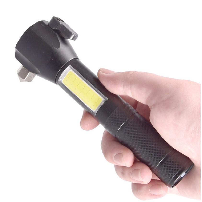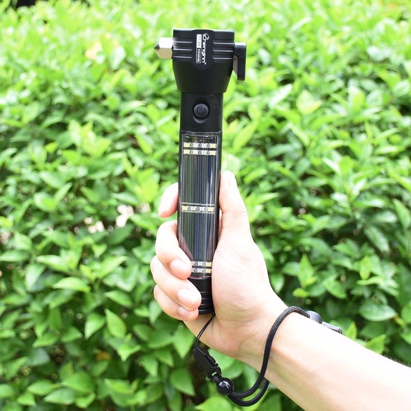 - Rất nhiều vụ tai nạn thương tâm xảy ra do xe hơi bị rơi xuống nước, dây đai an toàn bị kẹt mà người trong xe không thể thoát thân vì thiếu dụng cụ hỗ trợ thoát hiểm như búa đa năng thoát hiểm. Trong trường hợp này, đèn pin đa năng sẽ cứu mạng bạn và cả gia đình. Việc bạn cần phải làm là dùng đầu dao cắt, cắt nhanh dây an toàn và sử dụng đầu búa đạp vỡ kính để thoát ra ngoài nhanh chóng.