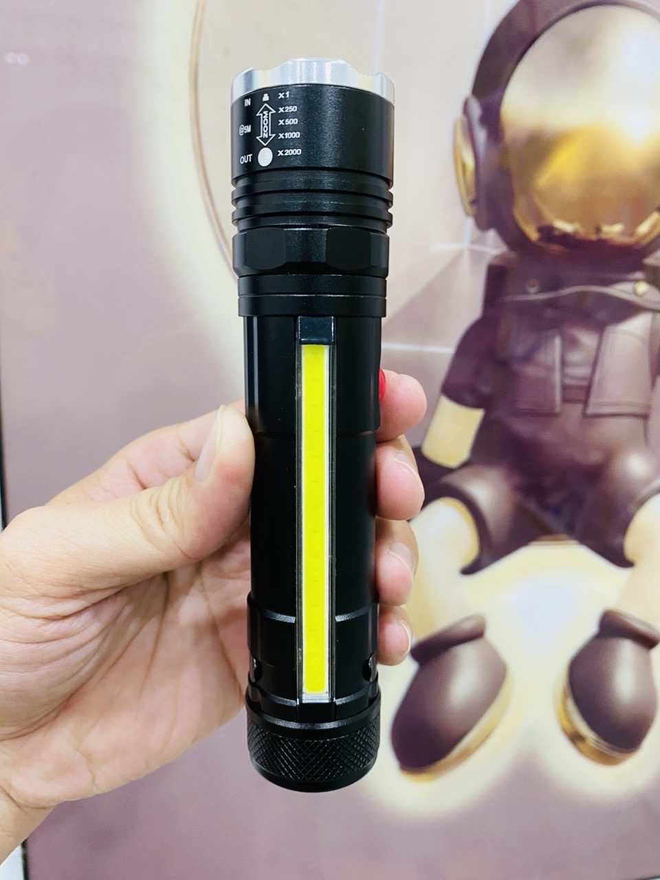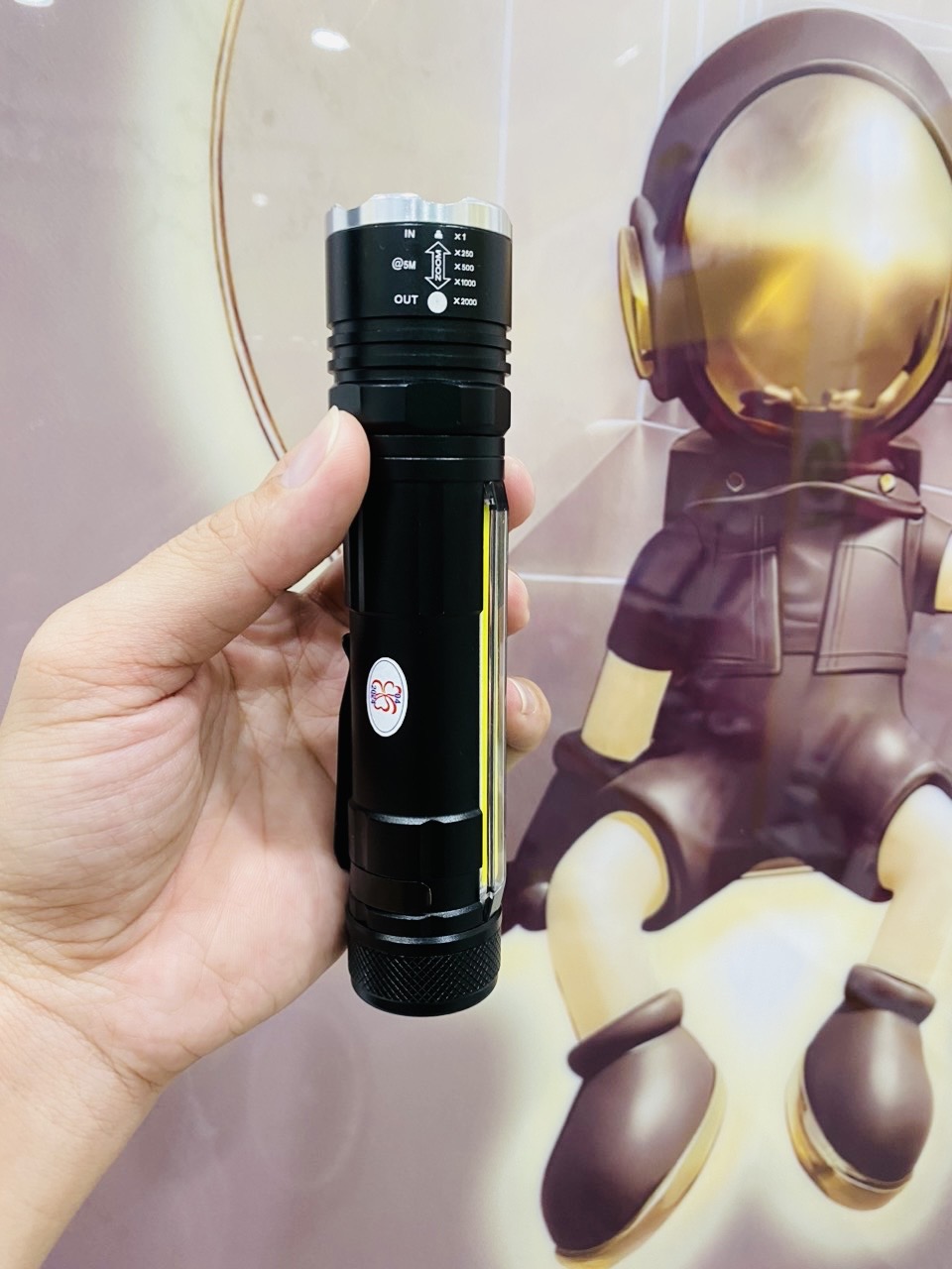 Sản phẩm còn có thể chiếu xa đến 500m khi trượt zoom để tia sáng có thể tập trung tại một điểm.