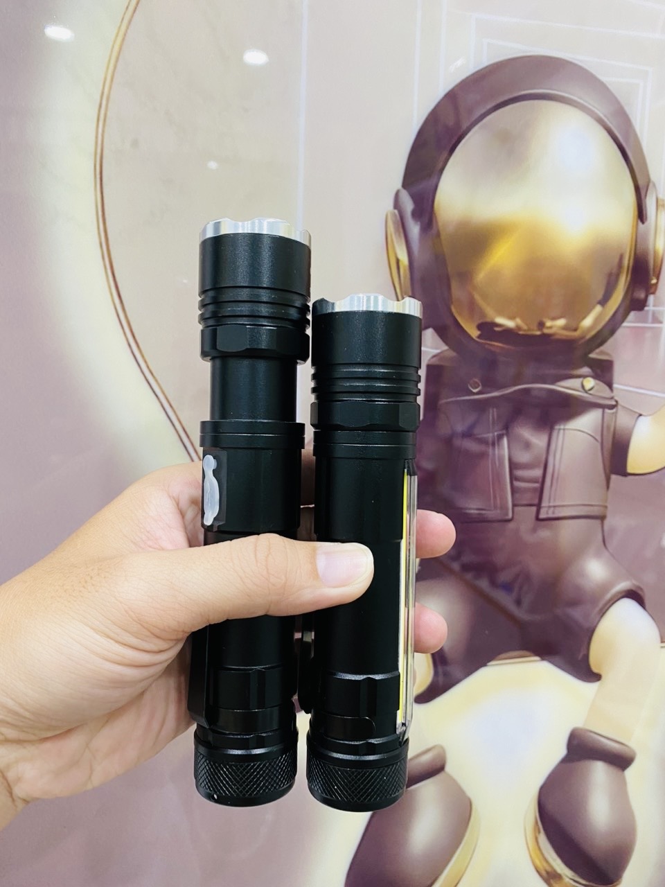 Trọng lượng sản phẩm: 230 G (bao gồm đèn pin + hộp màu + cáp sạc USB)