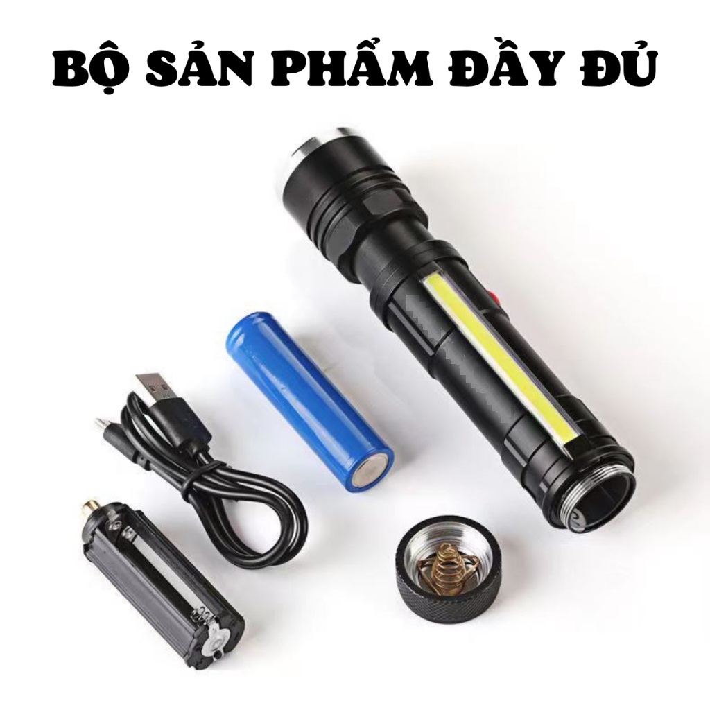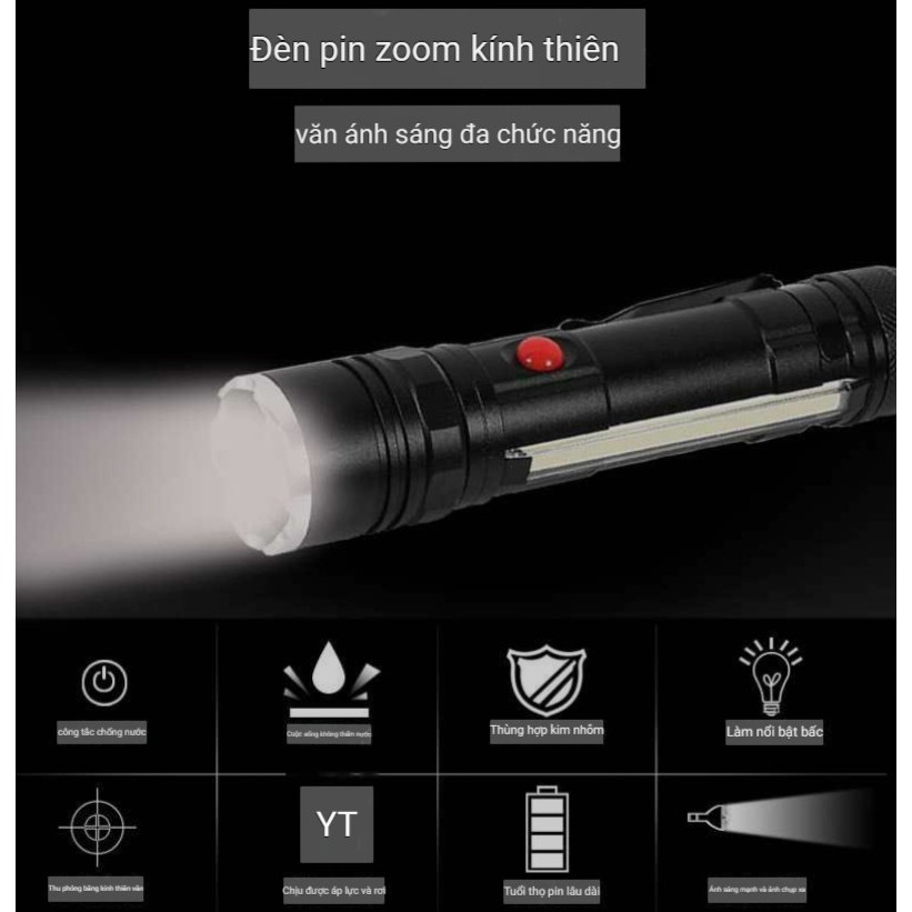 Điểm nổi bật: đầu T6 + bên đèn pin chế độ nguồn kép COB với nam châm + chức năng khóa bút Sạc