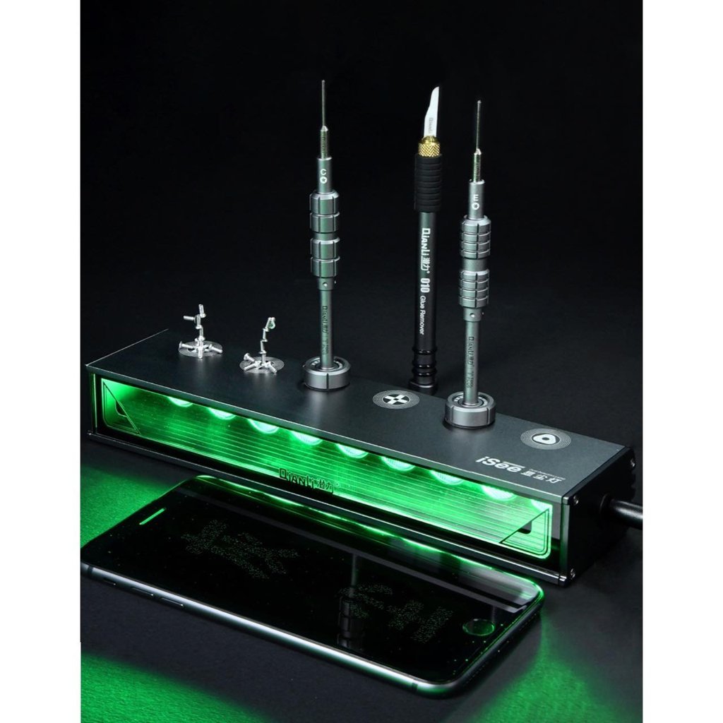- Máy quét bụi QianLi - iSee Pro được thiết kế để làm sáng mọi hạt bụi hoặc vết trầy xước khi thay thế hoặc ép kính màn hình trên điện thoại hay máy tính bảng.