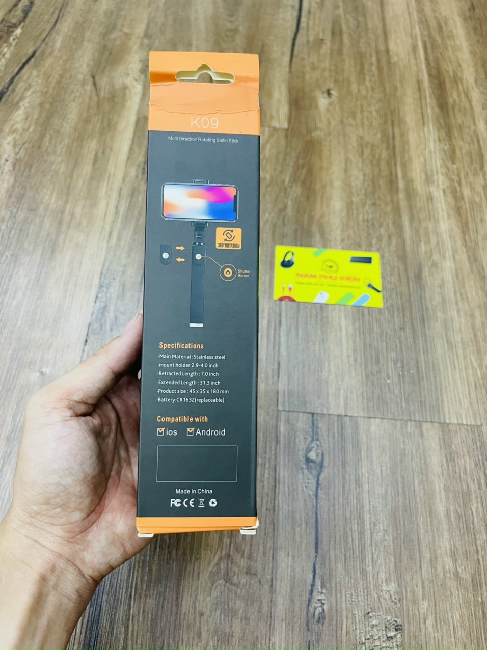 Gậy chụp ảnh K09 với điều khiển kết nối bluetooth vô cùng tiện lợi.