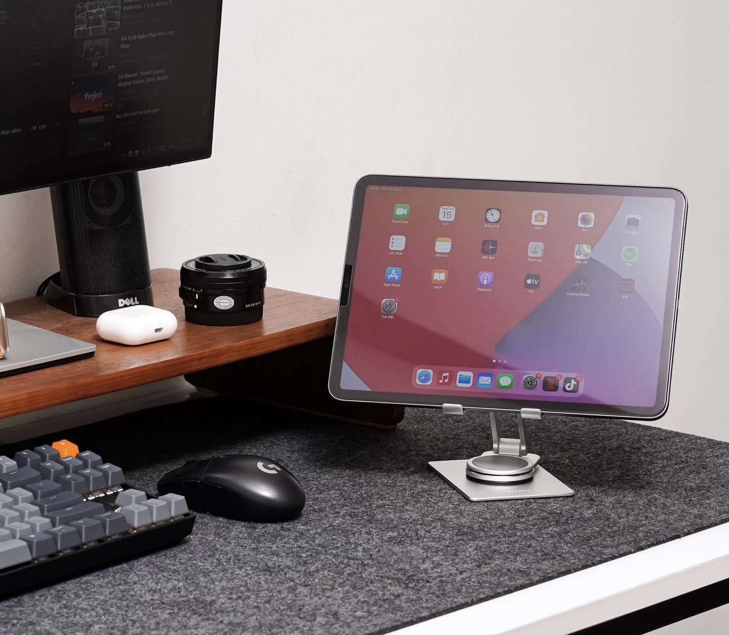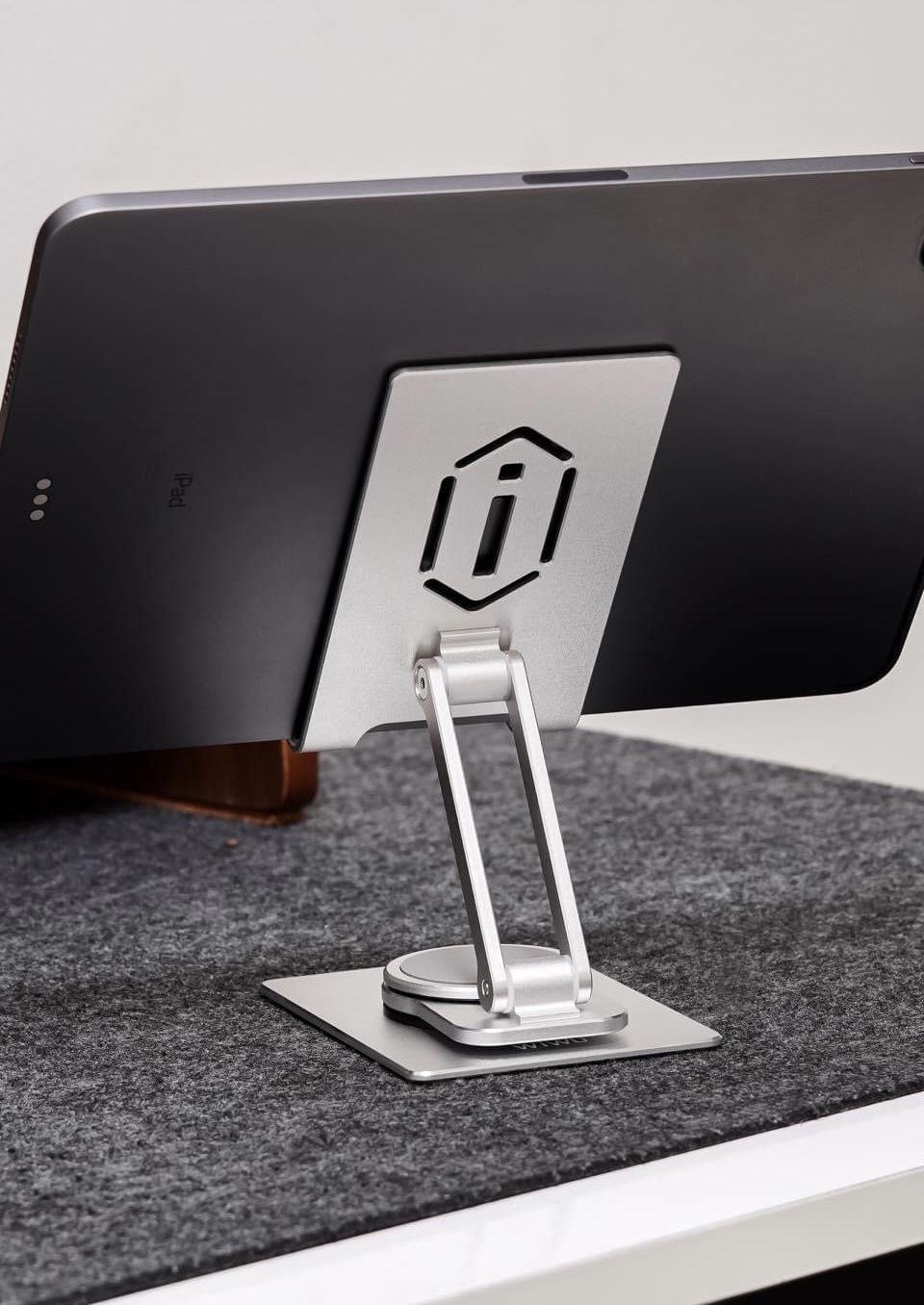 - Đế xoay để bàn di động cho điện thoại di động, máy tính bảng bằng hợp kim nhôm có thể điều chỉnh góc linh hoạt.