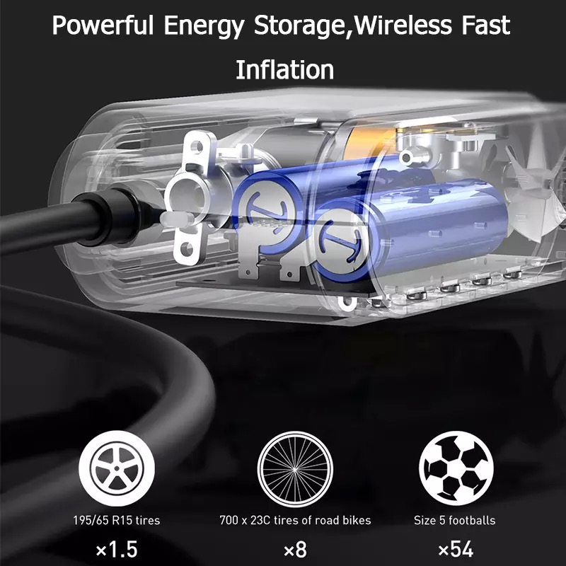 Hỗ trợ bơm từ trái bóng, xe đạp, xe máy, ô tô... với đầy đủ các đầu bơm khác nhau.