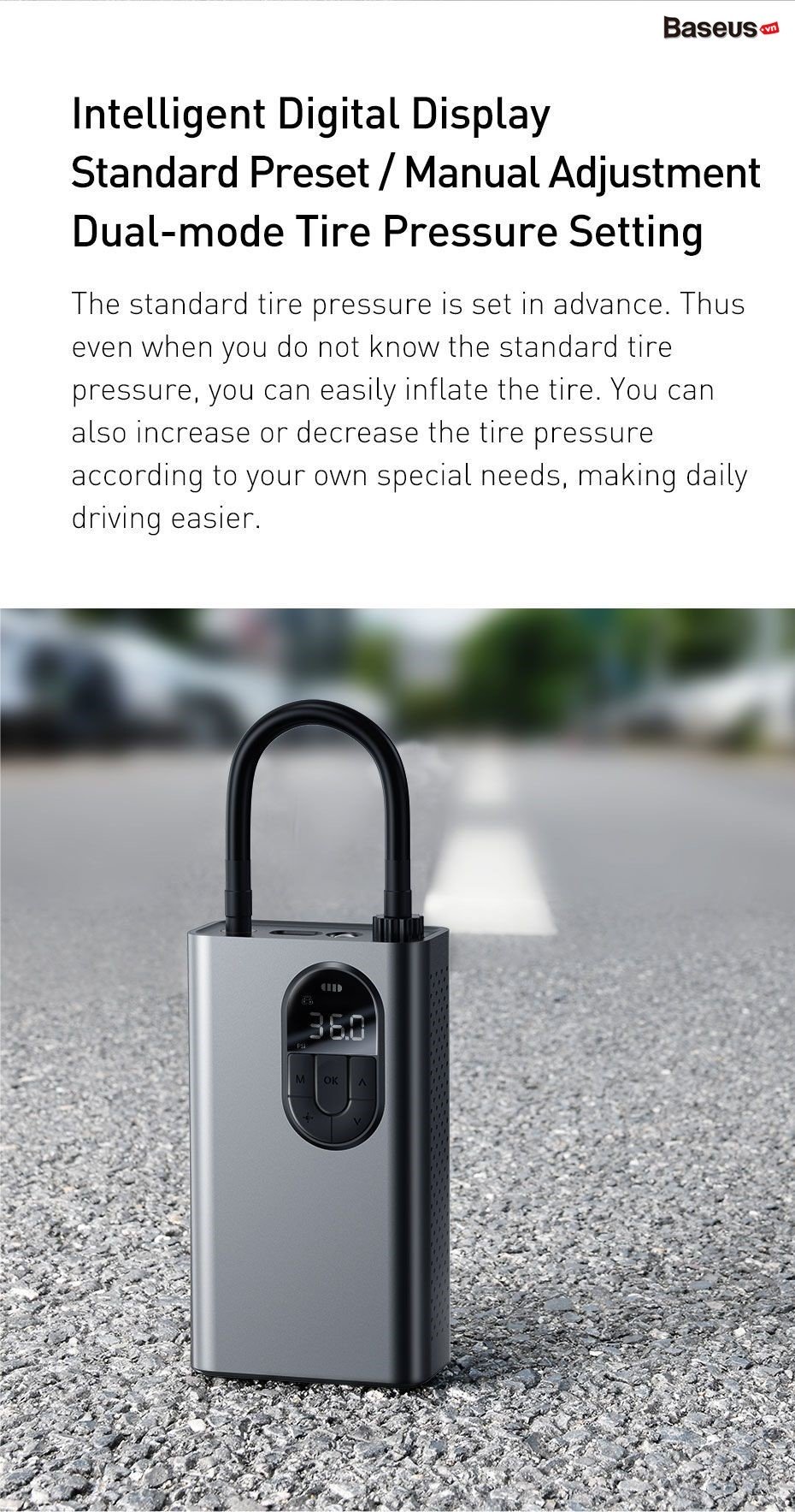 Tire pressure can be set according to requirements, and ination can be automatically stopped when tire pressure reaches preset levels