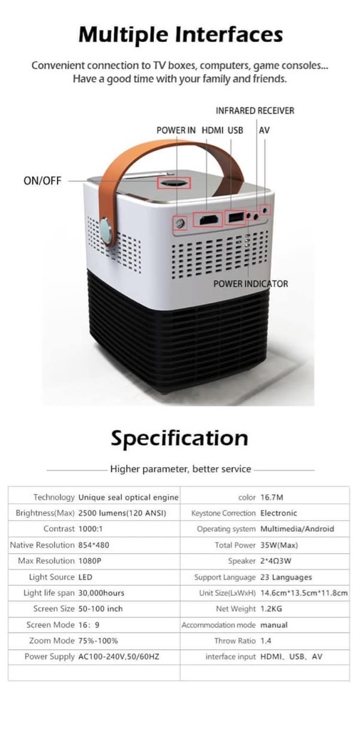Siêu máy chiếu mini chính hãng Wejoy WJ Y7 – Smart tivi 100 inch di động
