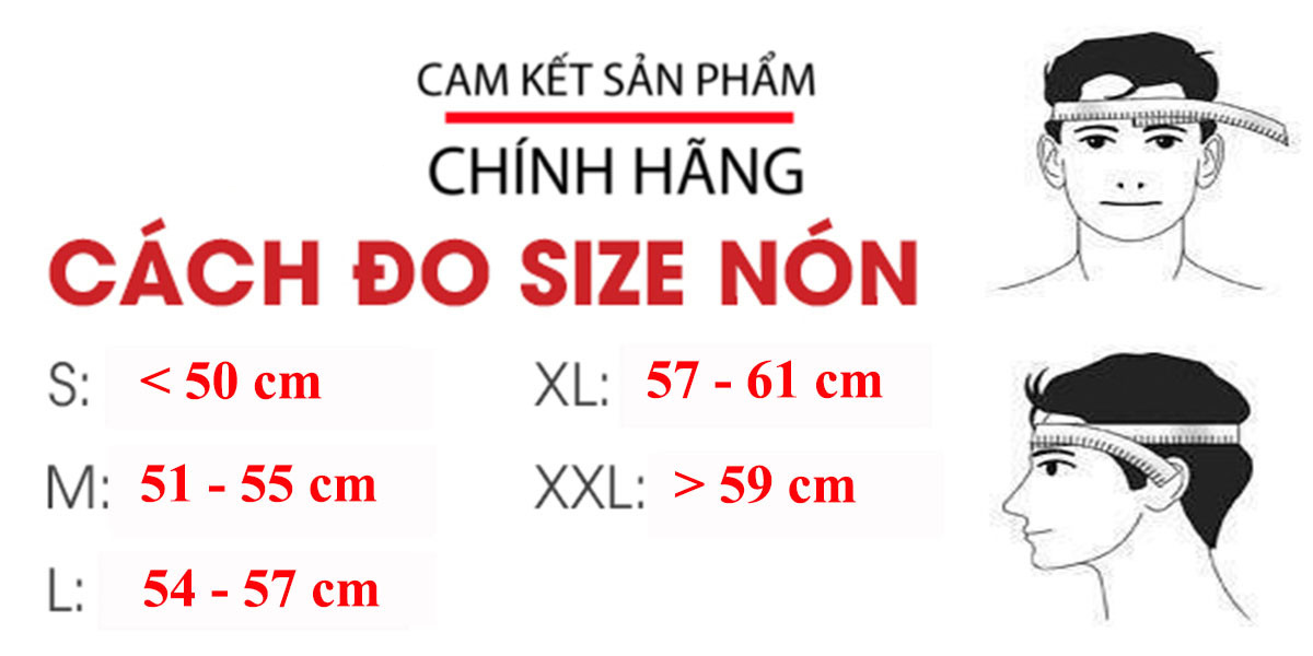 Sản phẩm trang bị khóa đeo kiểu rút mở dễ dàng và tiện dụng. Dây quai chịu lực, độ dài linh động có thể điều chỉnh phù hợp với nhiều người. Nón phù hợp cho vòng đầu từ 54 - 59cm.