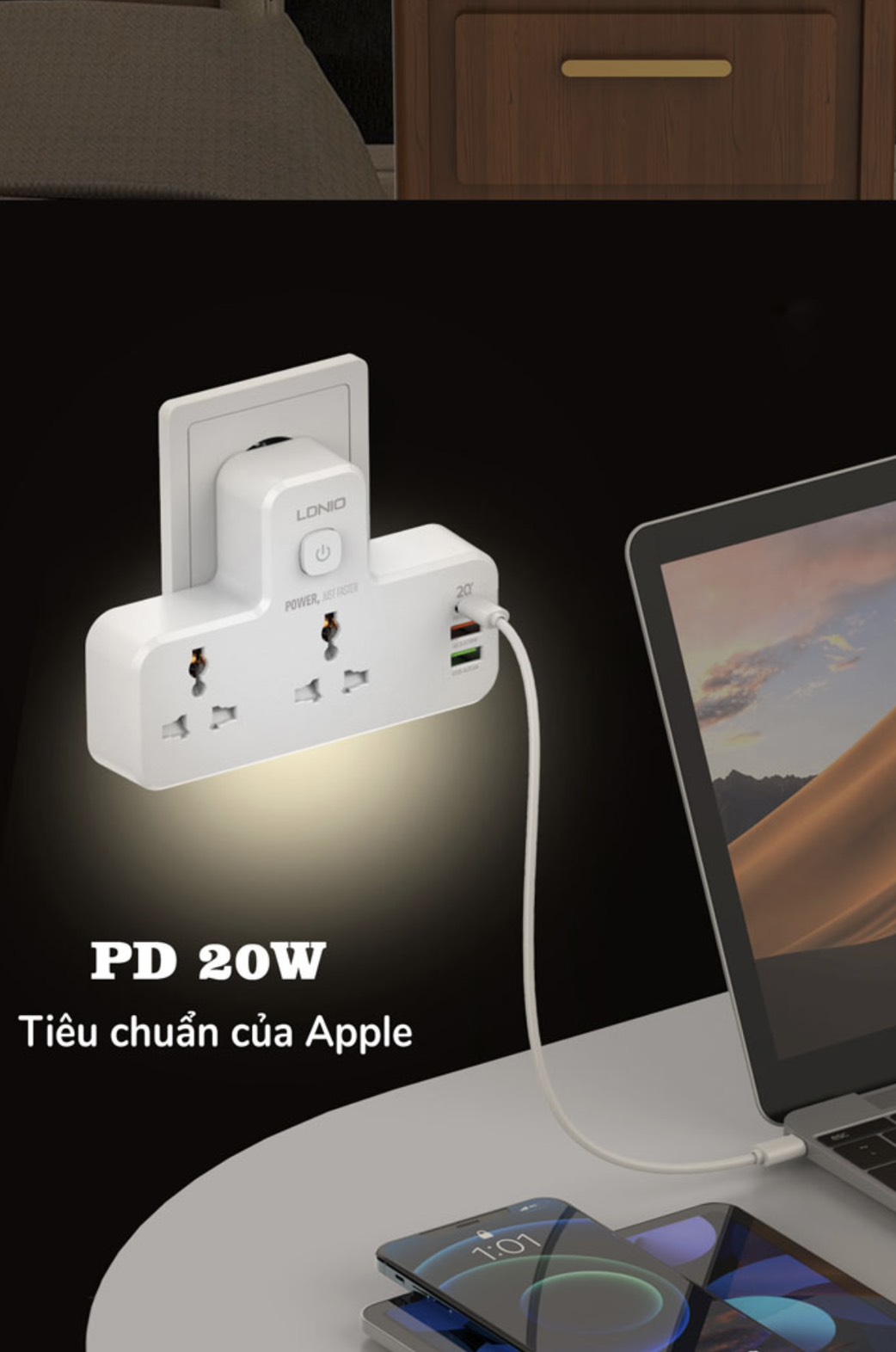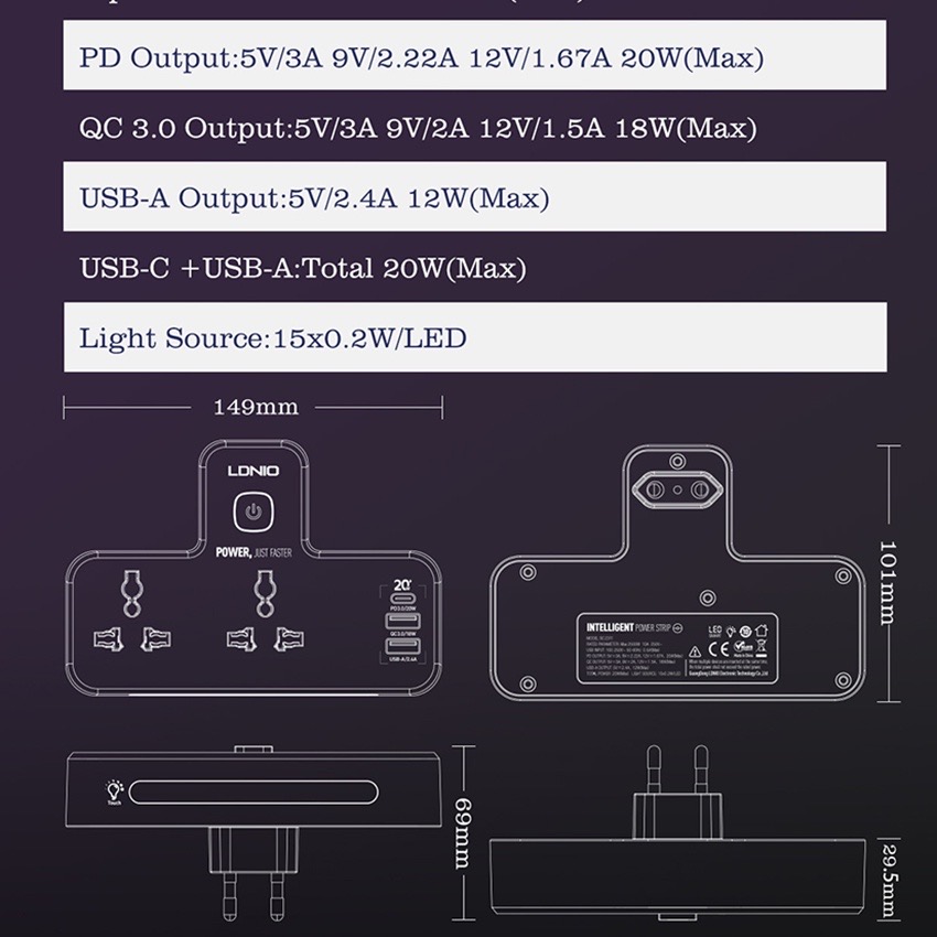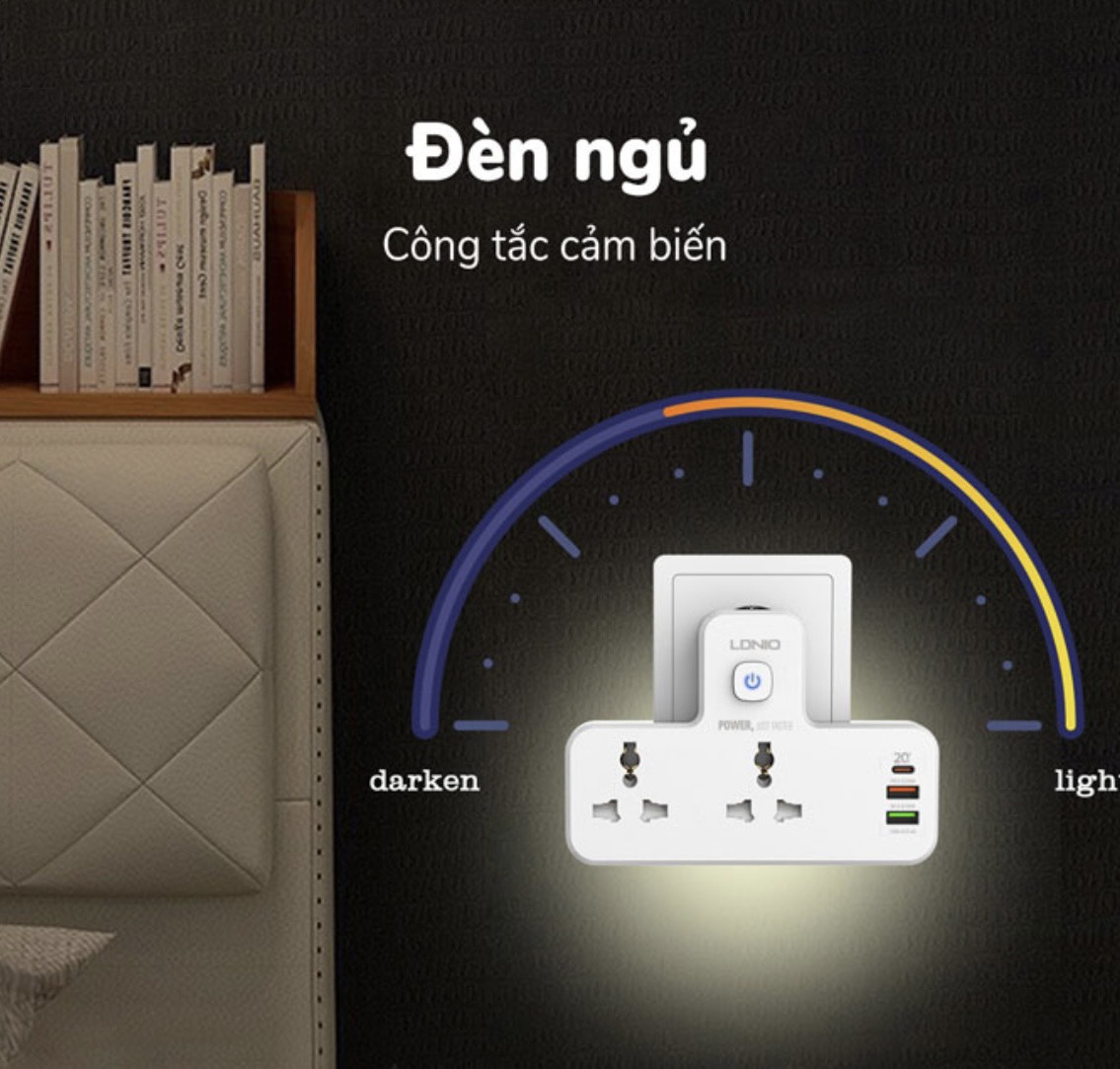 Ổ cắm đa năng LDNIO tích hợp đèn ngủ và cổng PD+QC 20W