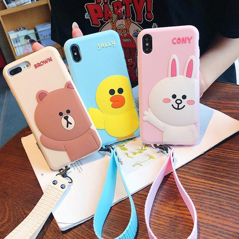 Mẫu ốp lưng siêu Cute với các hình nổi nhân vật LINE : thỏ CONY / gấu BROWN / vịt SALLY/ chó RICH