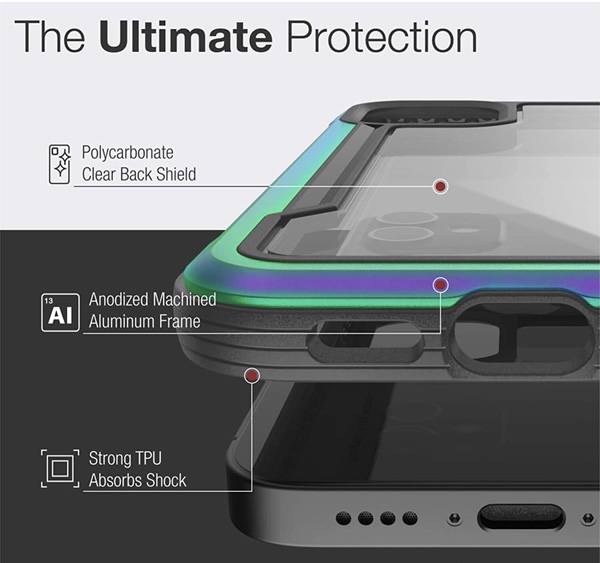 Ốp lưng iPhone 12/iPhone 12 Pro X-Doria Defense Shield được sản xuất bởi 3 chất liệu là mặt lưng nhựa cứng trong suốt, viền cao su dẻo và bao quanh viền là lớp Nhôm anodized giúp chống sốc tối ưu cho thiết bị của bạn.