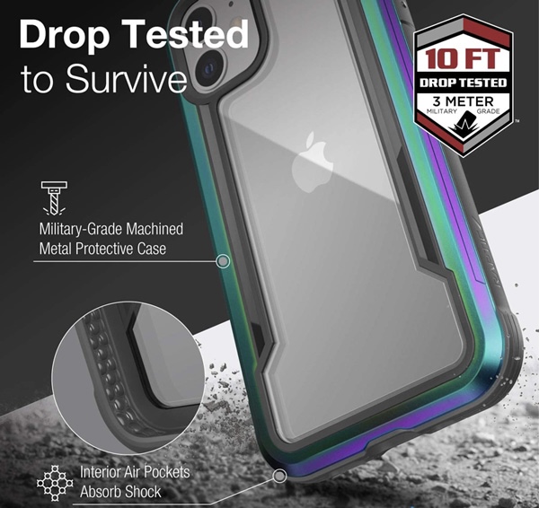 Ốp lưng iPhone 12/iPhone 12 Pro X-Doria Defense Shield được chứng nhận vượt quá tiêu chuẩn MIL STD 810G, cho độ rơi tối đa 3m (10 feet) nhưng vẫn bảo đảm thiết bị không bị ảnh hưởng.