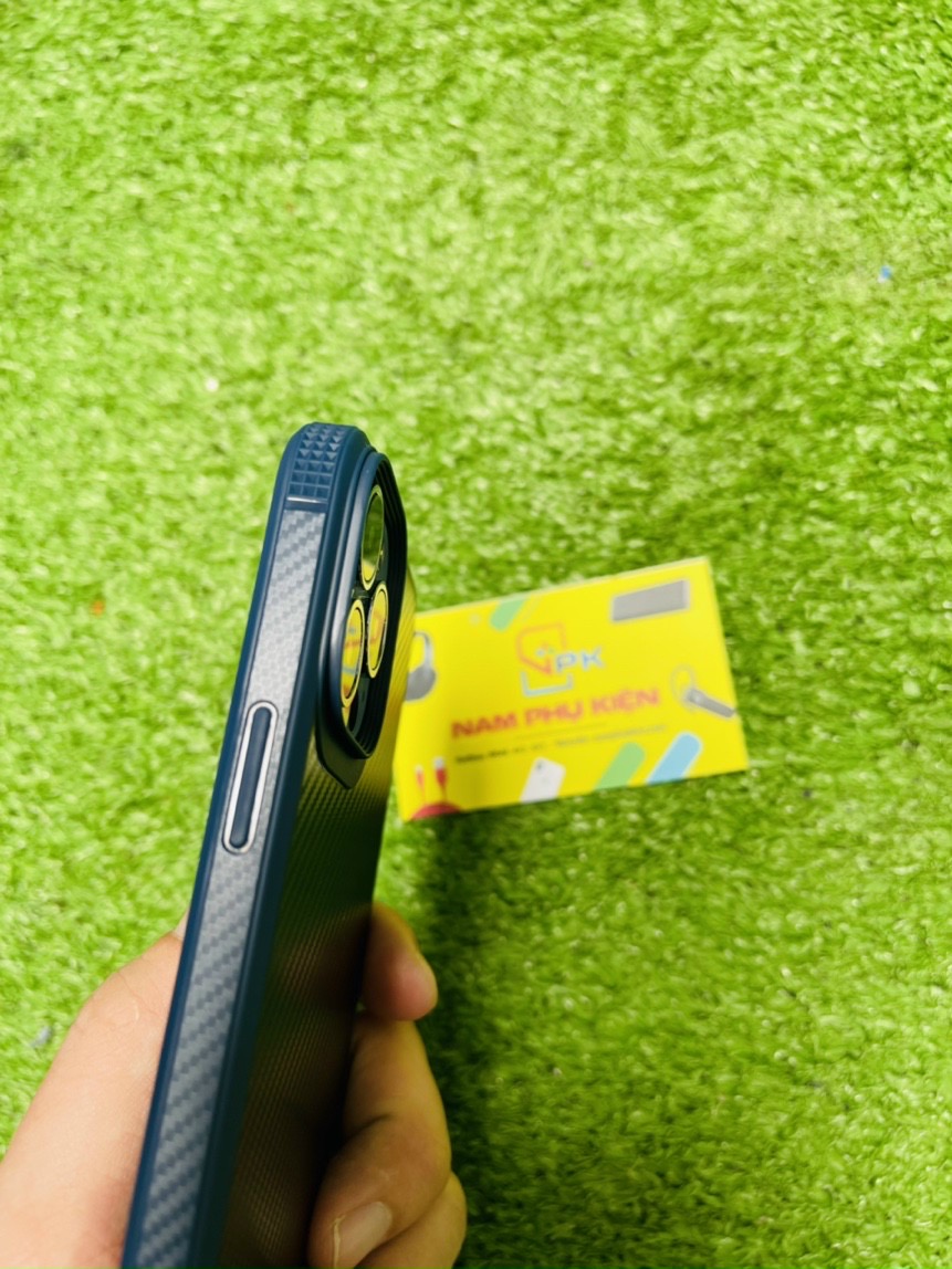 Mặt sau được thiết kế họa tiết vân carbon rất bắt mắt, mang lại cảm giác cầm nắm dễ chịu, không bám mồ hôi vân tay, vân carbon giúp cầm bám tay, khó rơi rớt trong quá trình sử dụng.