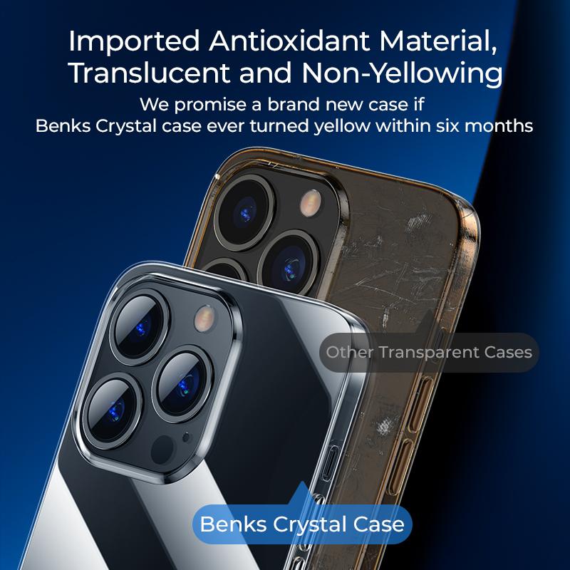 Ốp lưng trong suốt Benks cho iPhone 13 hạn chế bị ố vàng sau thời gian dài sử dụng.