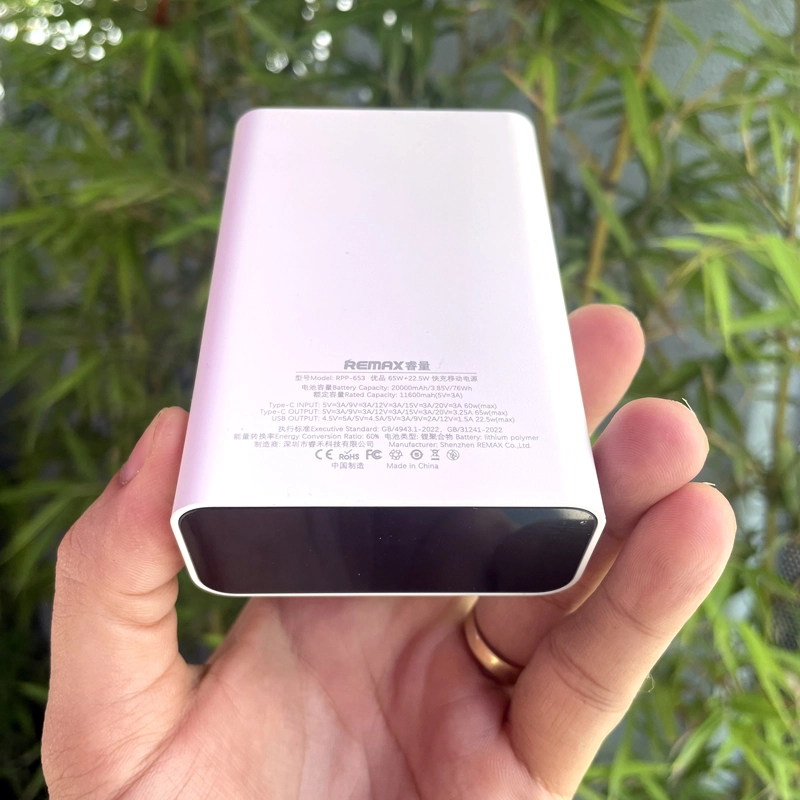 Remax RPP-653 hỗ trợ nhiều công nghệ sạc nhanh hiện đại. Cụ thể như, cổng TypeC hỗ trợ đầu ra PD 65W và sạc vào pin lên đến 60W, và cổng USB hỗ trợ đầu ra max 22.5W.