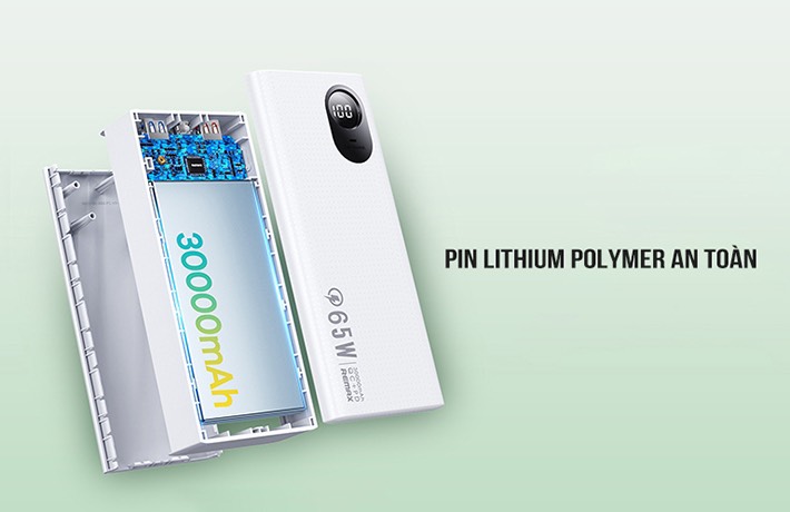 Sản phẩm sử dụng lõi pin lithium polymer chất lượng cao giúp cho pin dự phòng có thiết kế nhỏ gọn, mỏng nhẹ, cho hiệu suất sử dụng cao. Pin được trang bị các tính năng bảo vệ quá dòng, bảo vệ quá nhiệt, bảo vệ ngắn mạch, bảo vệ nguồn điện, bảo vệ quá áp, bảo vệ quá tải đảm bảo an toàn hơn trong khi sử dụng