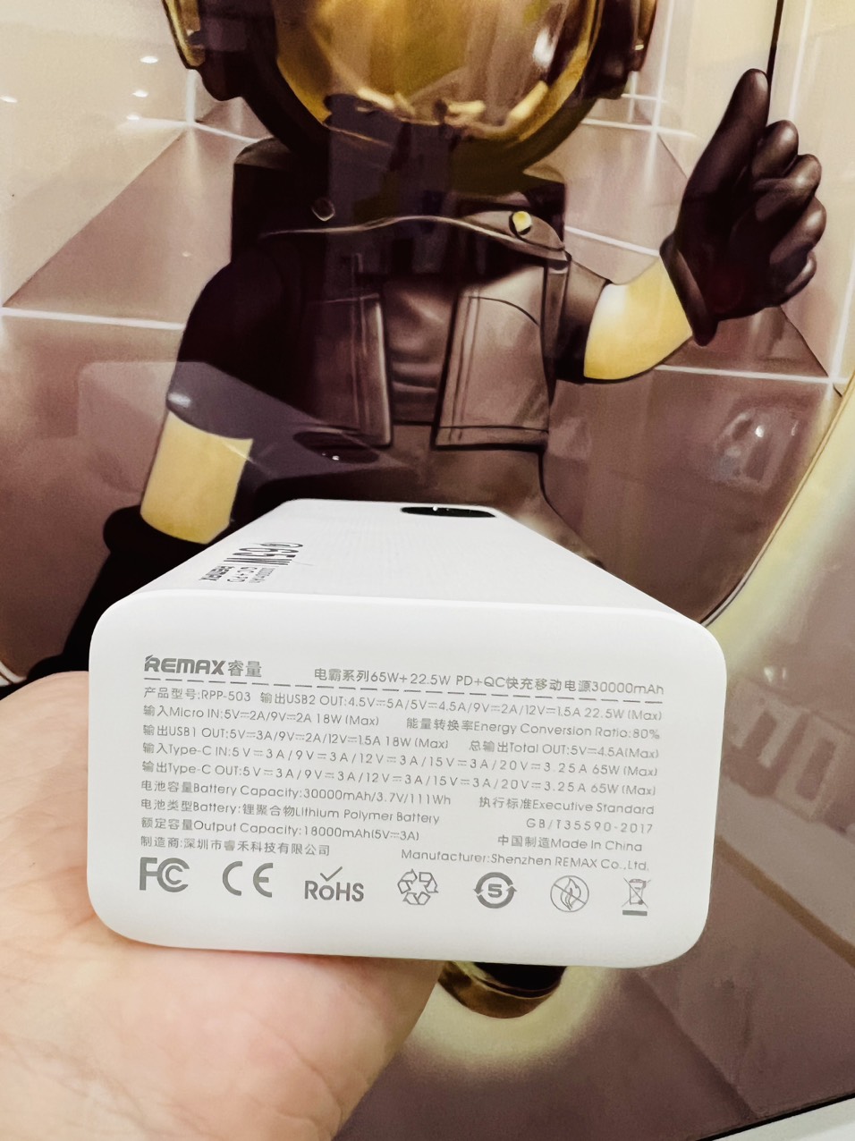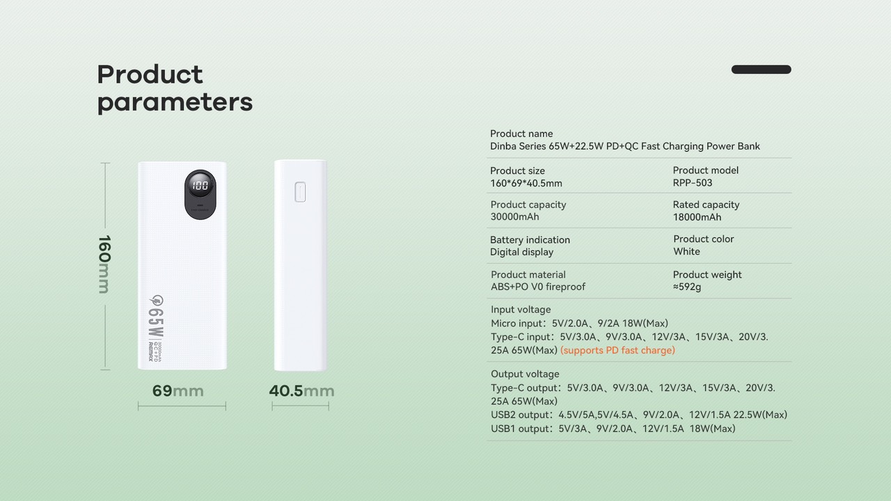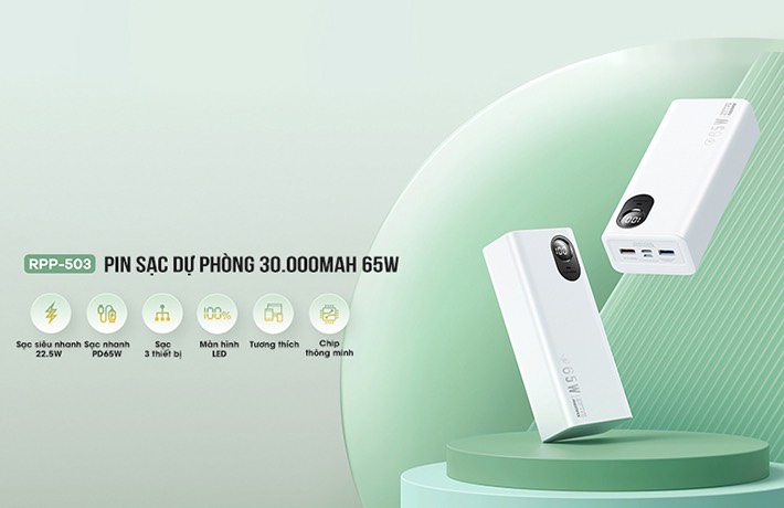 | Tên sản phẩm: | Pin sạc dự phòng 30000mAh 65W Remax RPP-503 |