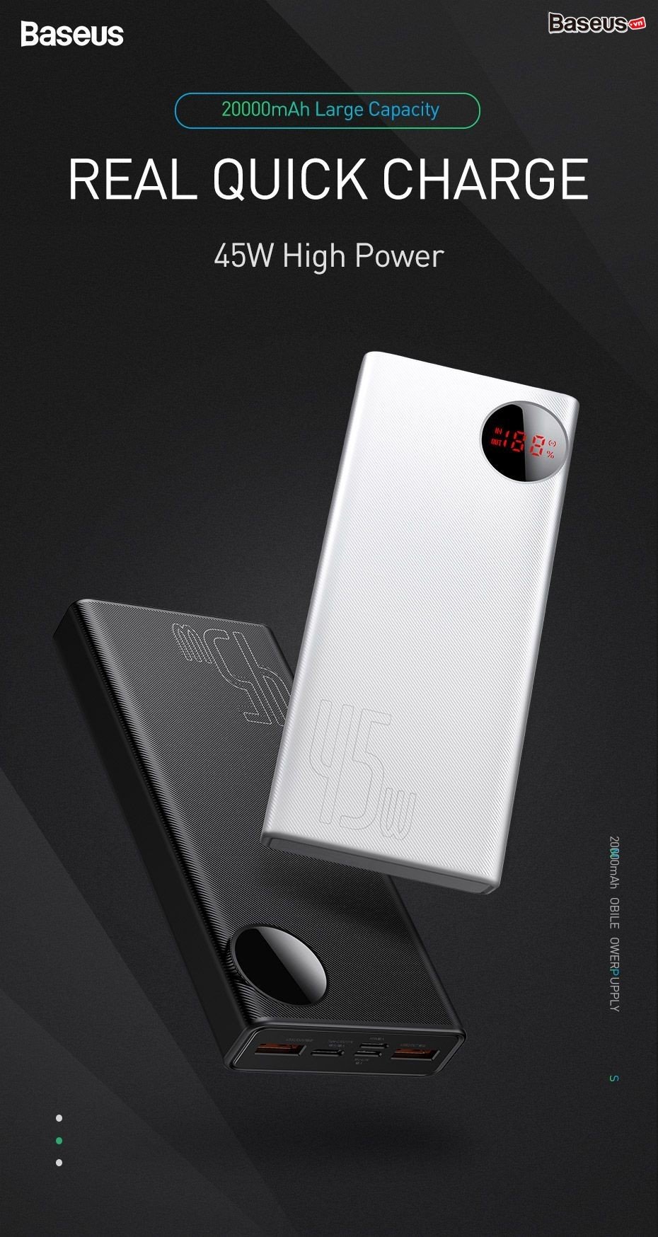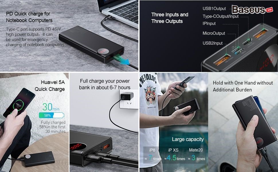 Hình ảnh chi tiết Pin dự phòng sạc nhanh, công suất cao Baseus Mulight Digital Display 45W ( 20,000mAh , PD/ Quick Charge Power Bank)