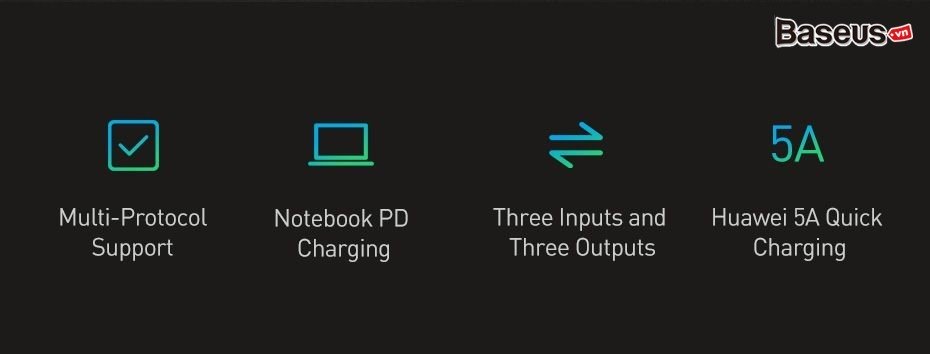 - Công suất sạc tối đa 45W đủ đáp ứng nhu cầu sạc cho hầu hết các dòng sản phẩm điện thoại di động.