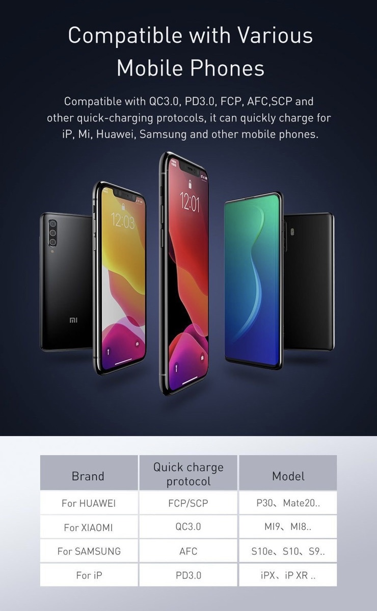 - Hỗ trợ nhiều chuẩn sạc nhanh: QC3.0, PD3.0, FCP, AFC,..