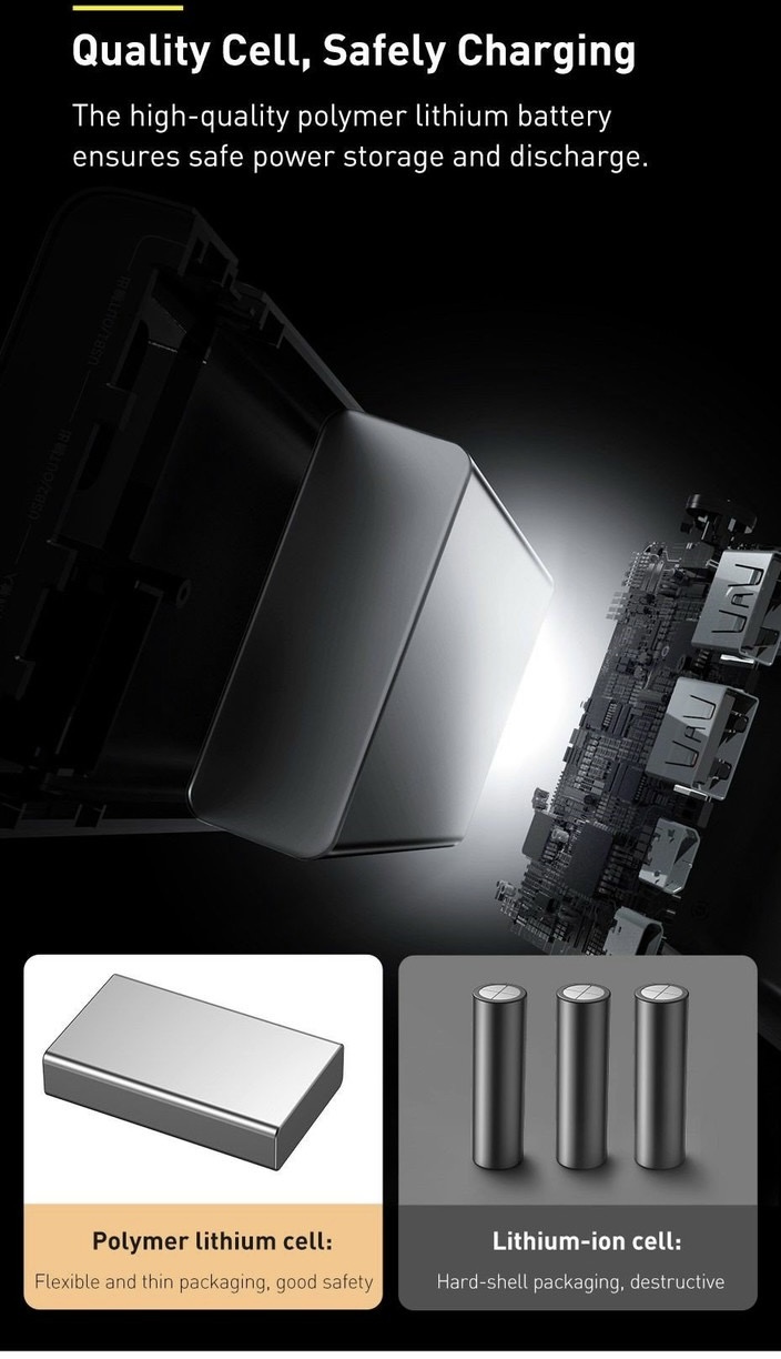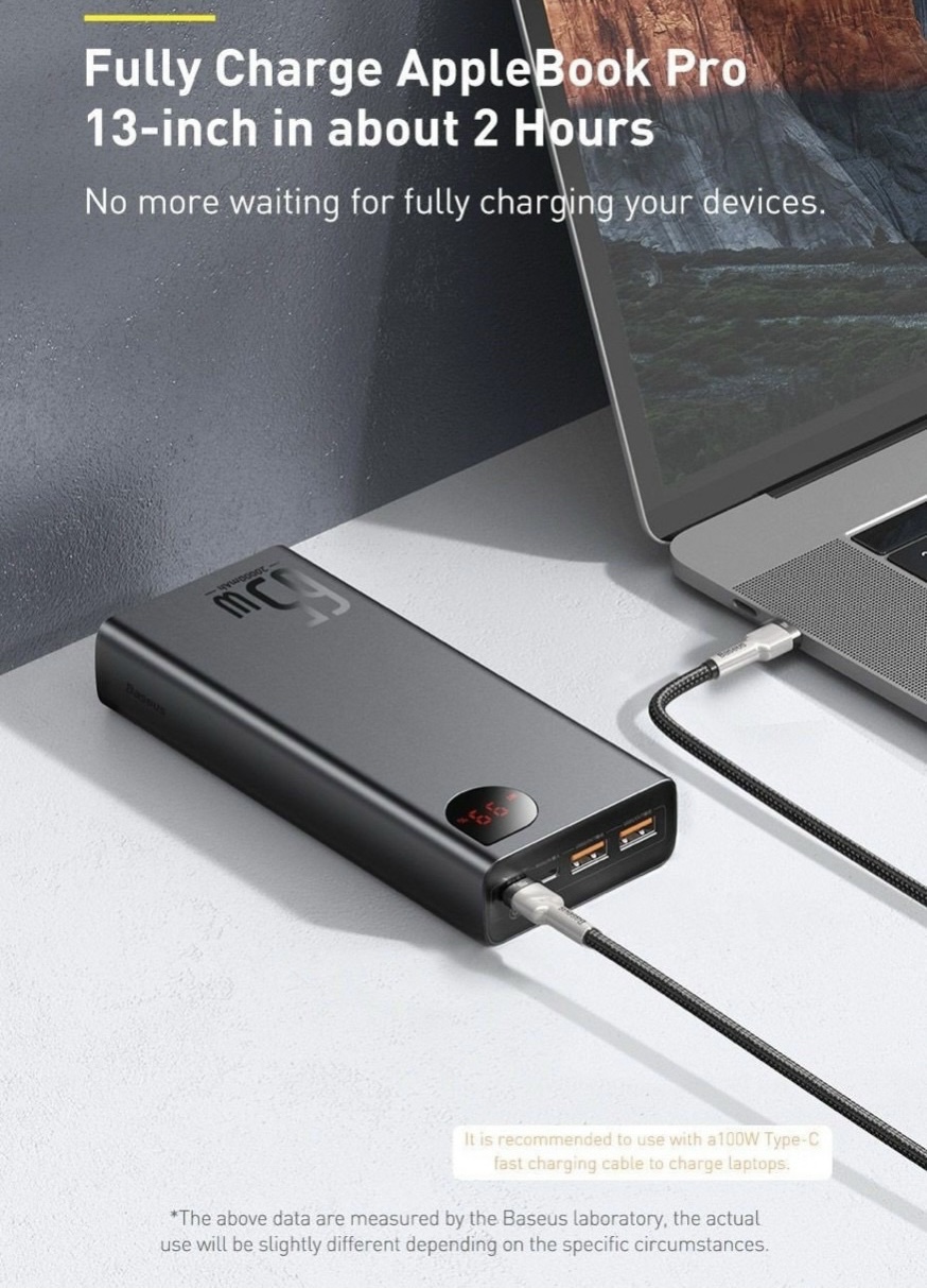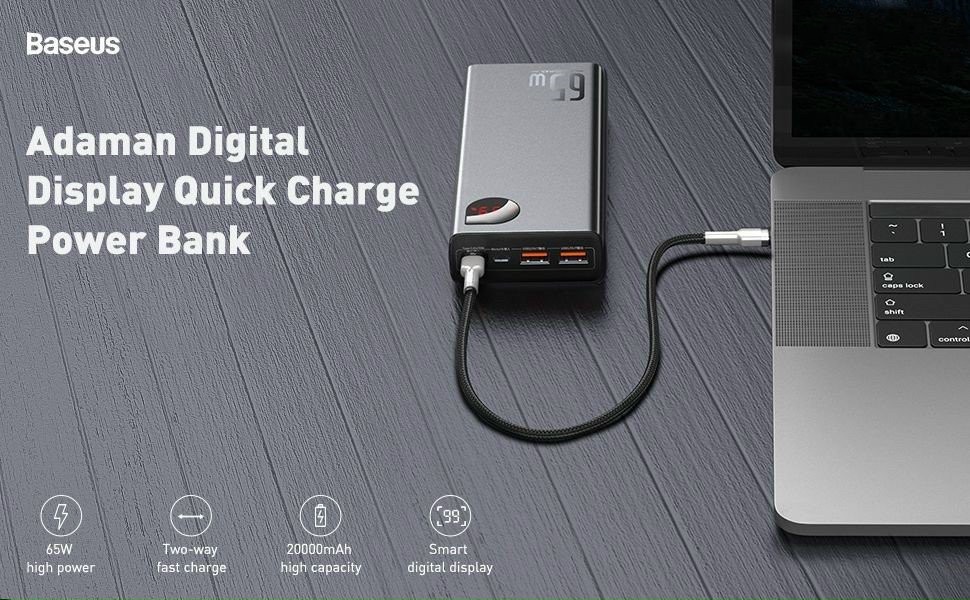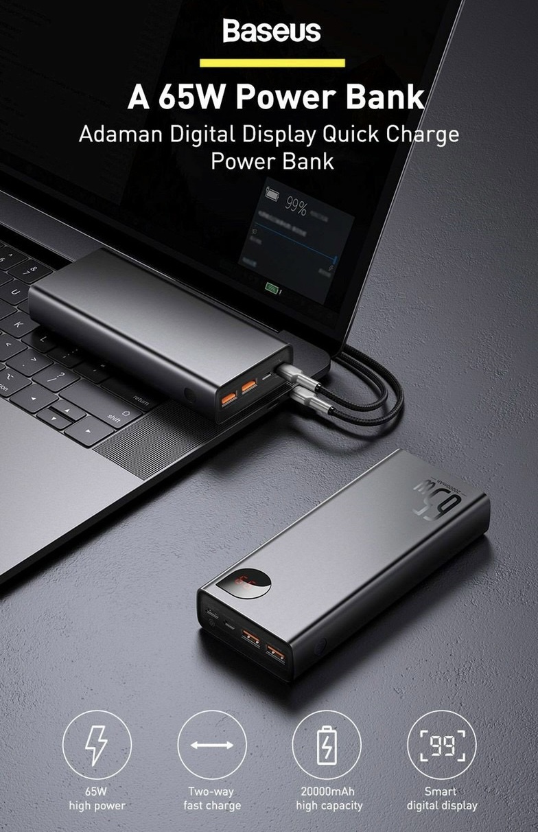 - Pin sạc dự phòng Baseus Adaman có dung lượng 20,000mAh, hỗ trợ hầu hết các chuẩn sạc nhanh hiện nay, tương thích với hầu hết các thiết bị số hiện nay từ Smartphone/ Tablet/ iPhone / iPad cho đến các loại Macbook hay Laptop (có hỗ trợ sạc pin qua cổng Type C Power Delivery)...