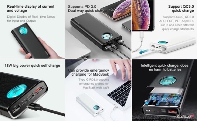 - Được tích hợp chíp xử lý nguồn thế hệ mới có hiệu suất sử dụng cao, độ ổn định vượt trội cùng với cơ chế bảo vệ thông minh. Pin dự phòng Baseus Amblight 20,000mAh cho mức điện áp sử dụng ổn định, đảm bảo an toàn cho thiết bị và người sử dụng .