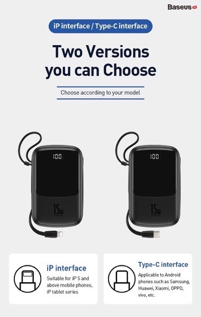 Pin dự phòng tích hợp cáp sạc Baseus Q Pow Digital Display 10,000mAh (3A/ 15W, Fast Charge Power Bank With Cable )