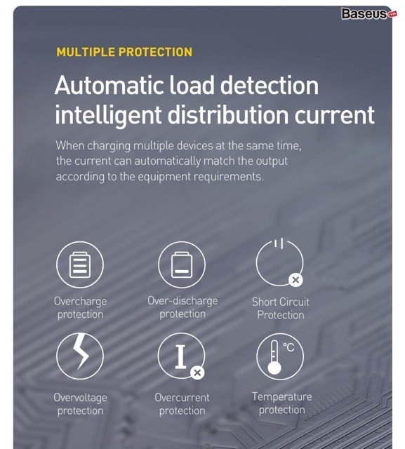 - Được tích hợp bộ xử lý nguồn thông minh có khả năng tự động nhận diện và điều chỉnh mức điện áp/ dòng điện/ công suất phù hợp với từng loại thiết bị. Khả năng ngăn ngừa quá tải, quá nhiệt và ngắn mạch.