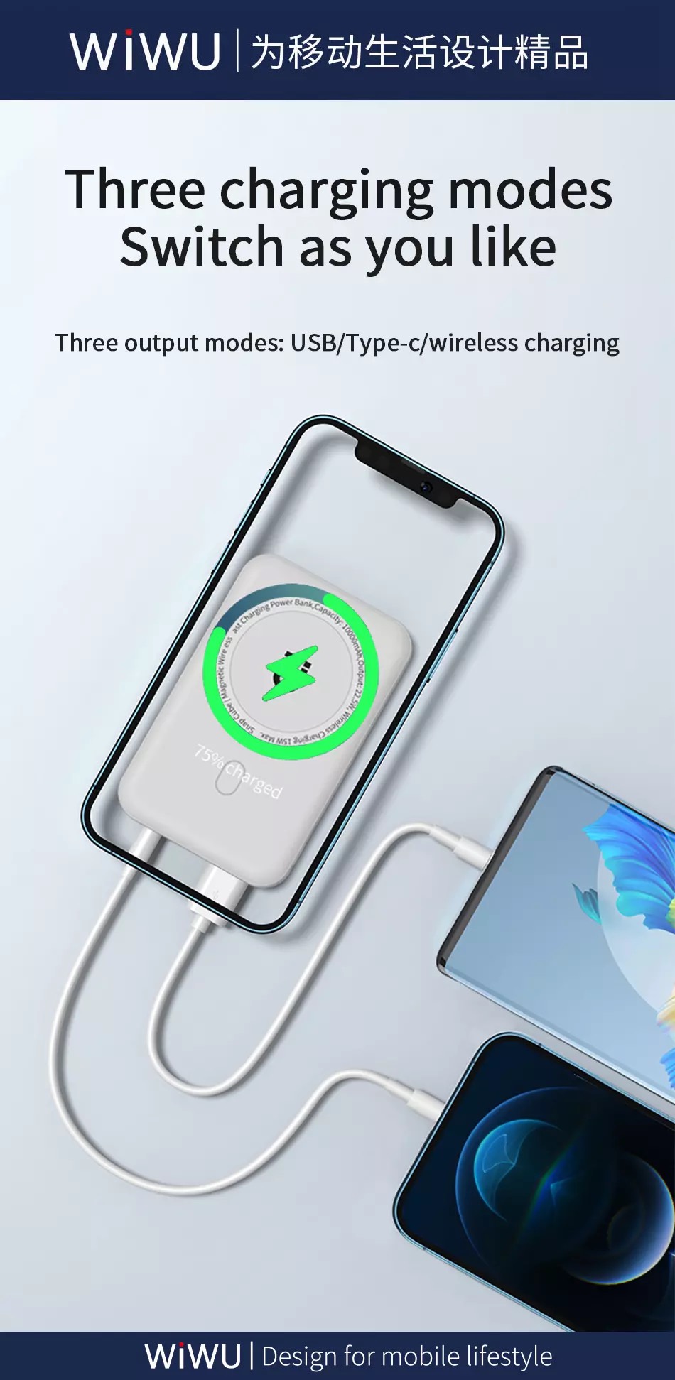 Sạc dự phòng Wiwu Hỗ trợ sạc Không dây