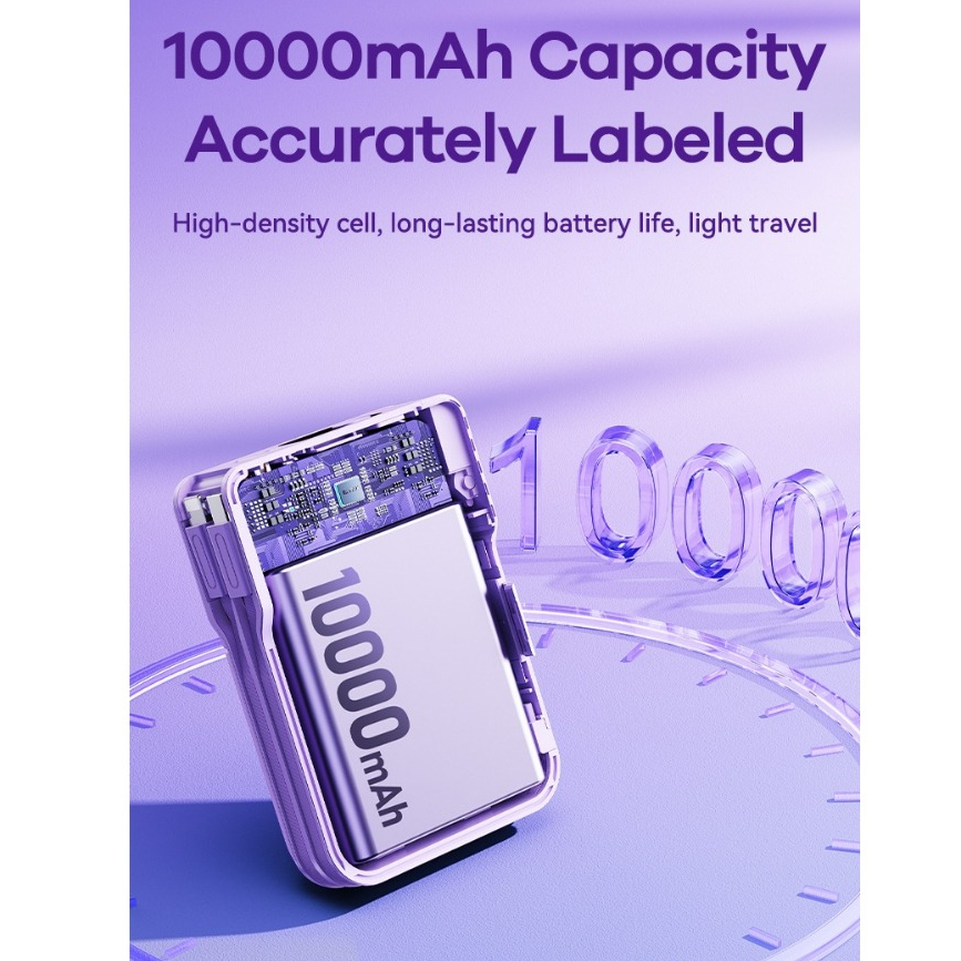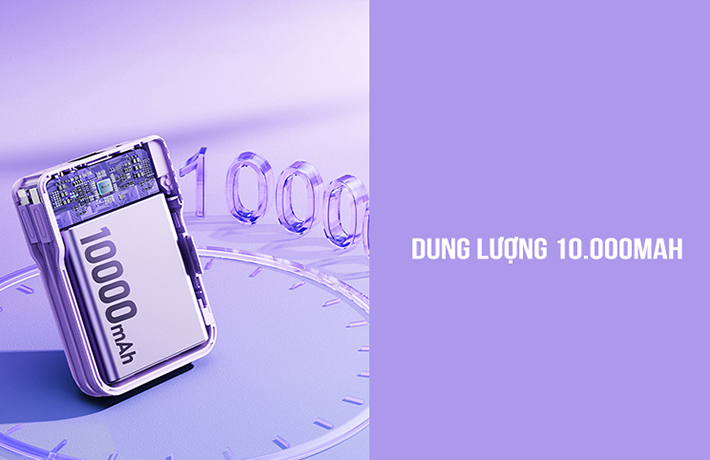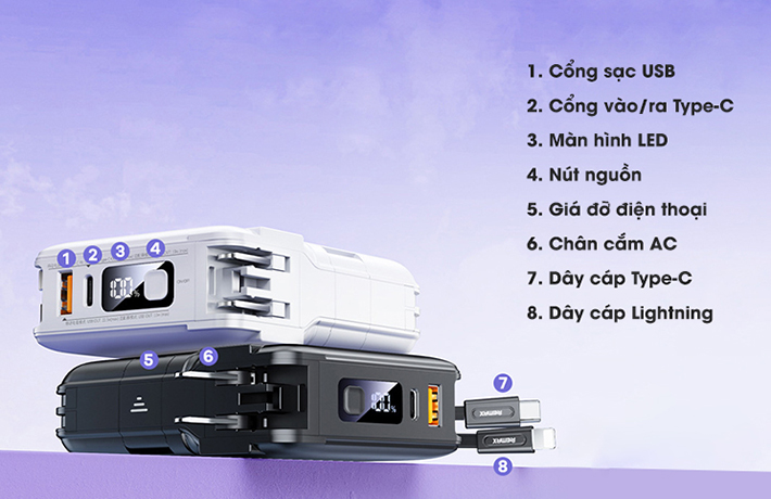 Đi kèm với sản phẩm là hai cáp sạc Lightning và Type C giúp người dùng nạp năng lượng nhanh chóng có các thiết bị di động mà không cần sử dụng cáp sạc bên ngoài. Vừa gọn gàng, vừa không gây rối mang đến nhiều sự tiện lợi cho người dùng. Bạn có thể sạc điện thoại, tai nghe, máy tính bảng, đồng hồ,... bằng 2 sợi cáp có sẵn này.