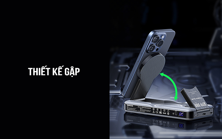Ngoài là pin sạc dự phòng, Remax RPP-589 còn là một chiếc đế sạc không dây tích năng lượng vô cùng tiện lợi. Chúng được thiết kế gấp gọn rất độc đáo để người dùng dễ dàng sử dụng. Với tính năng đặc biệt này, bạn có thể sạc không dây một cách thuận tiện cho các thiết bị hỗ trợ sạc không dây như điện thoại di động, tai nghe không dây, và đồng hồ thông minh. Sự linh hoạt này giúp giảm tình trạng rối dây và cho trải nghiệm sạc hiệu quả hơn.