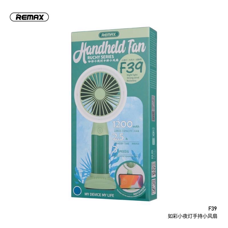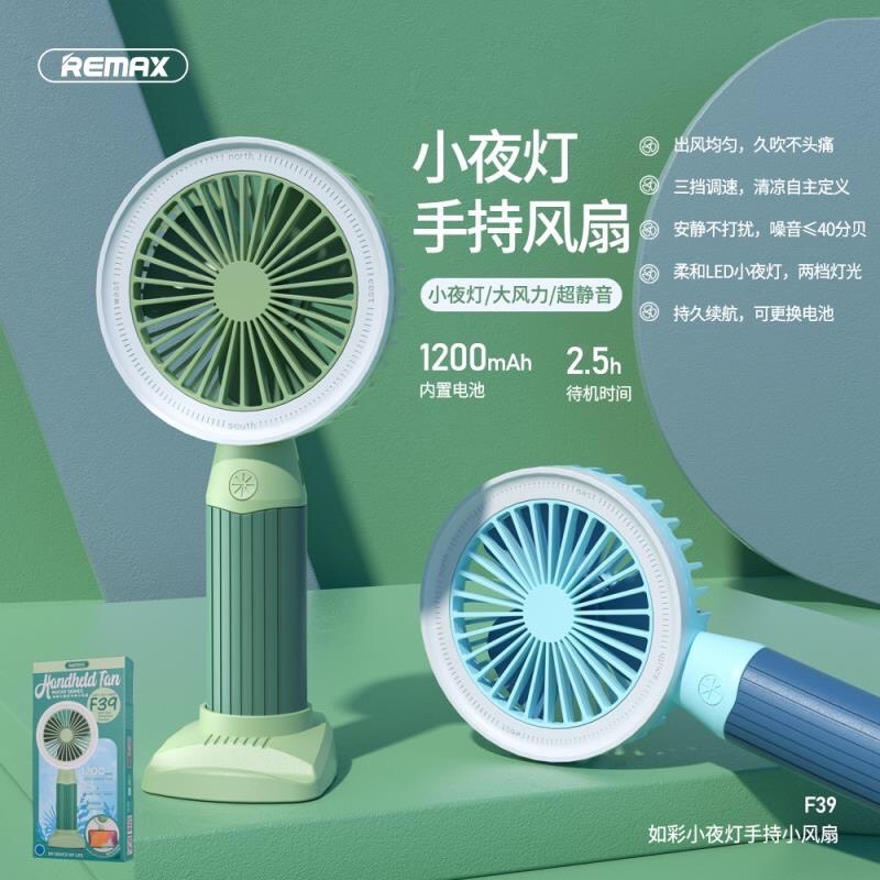 Quạt cầm tay pin 1200mah chính hãng Remax F39 có đèn Led.